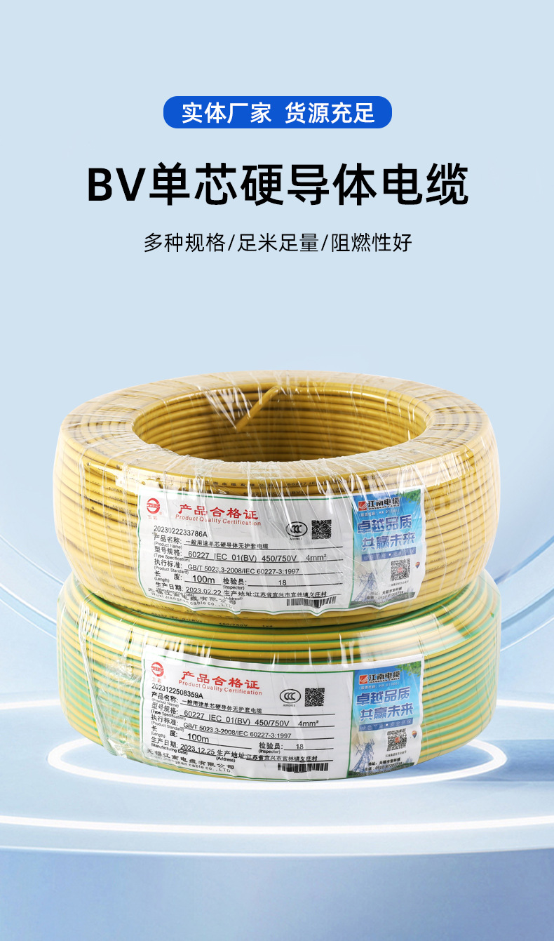 공장 직접 공급 BV 가정 장식 와이어 난연 GB 순수 구리 2.5 평방 강남 브랜드 단일 코어 하드 와이어 도매스토어 가기