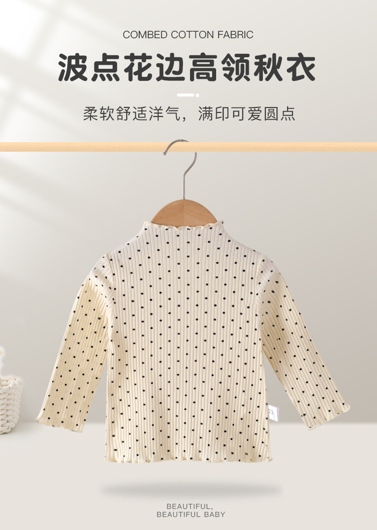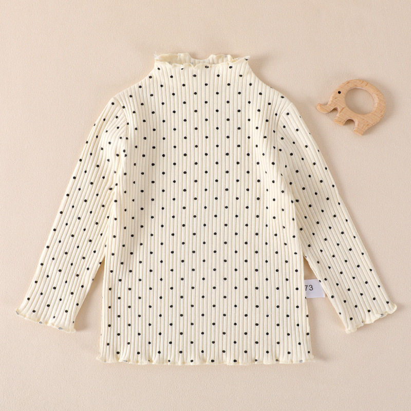 여자 가을 긴 소매 셔츠 1-4 세 아기 소녀 폴로 도트 면 셔츠 한국 스타일 어린이 최고 아기 기지