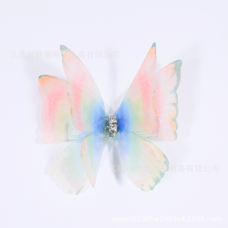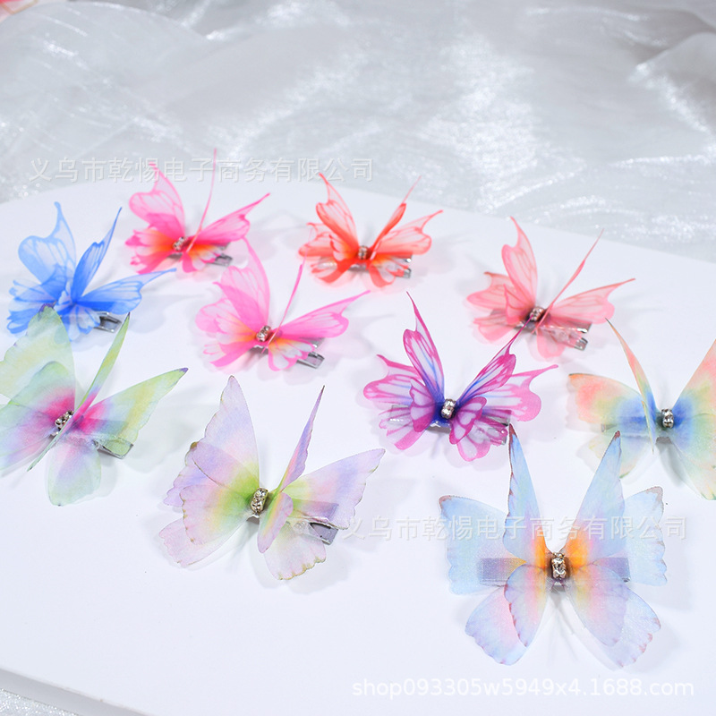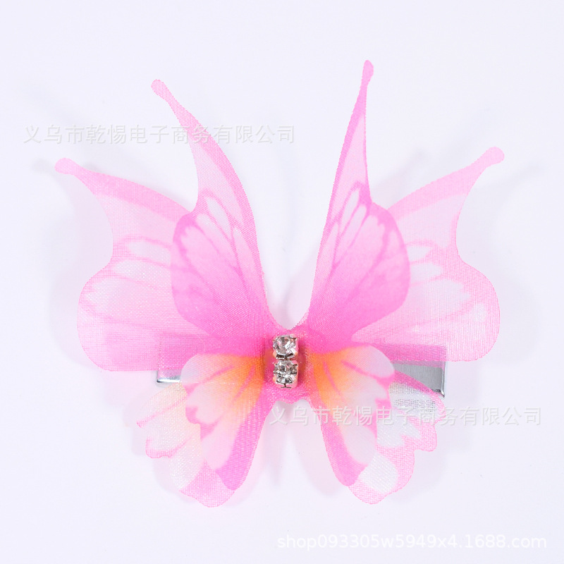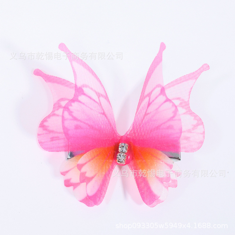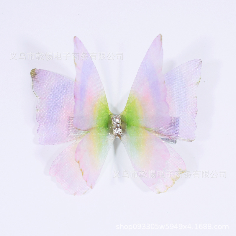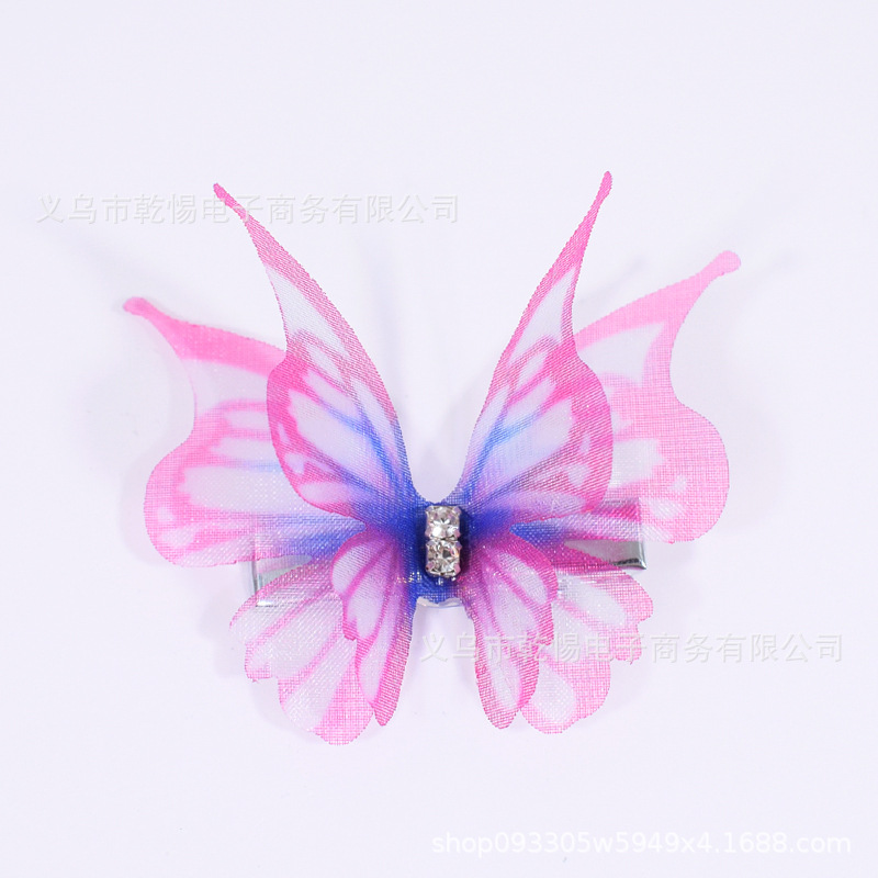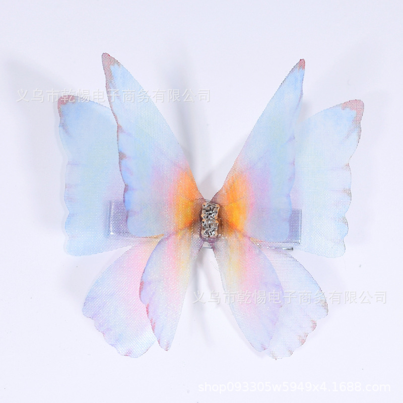 꽃 요정 Tulle 피닉스 낙하산 클립 더블 패브릭 원피스 헤어 액세서리 다이아몬드 인쇄 무지개 나비 헤어 클립