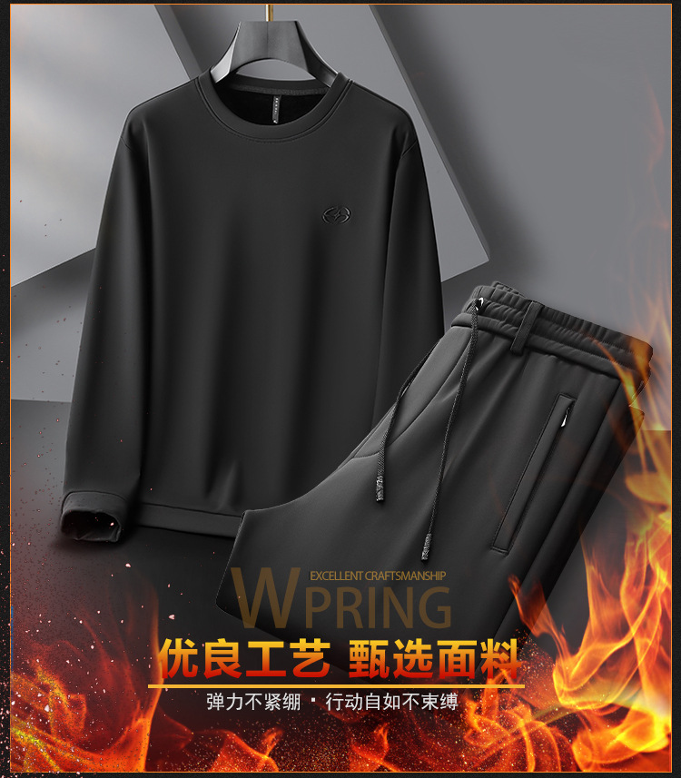 고급스러운 남성 정장, 봄철 기모 스포츠웨어 세트, 남성용 루즈핏 두꺼운 캐주얼 스웨트셔츠와 바지 투피스 세트 88스토어 가기