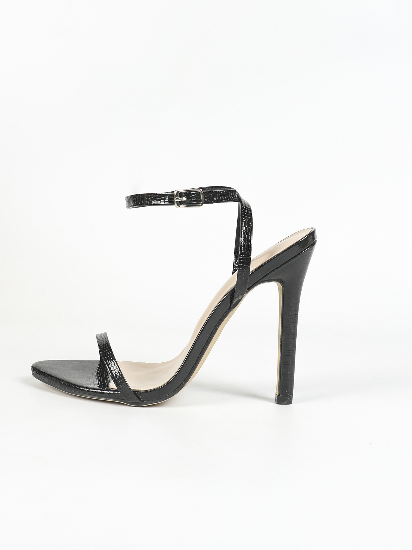 국경 간 유럽과 미국 여성의 한 단어 크로스 발목 버클 라운드 토 스틸레토 샌들 패션 파티 하이힐 신발