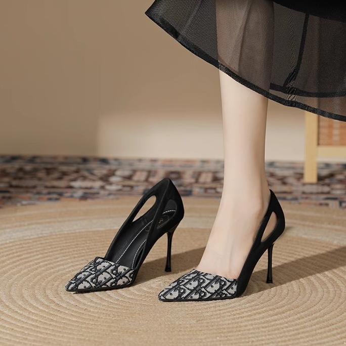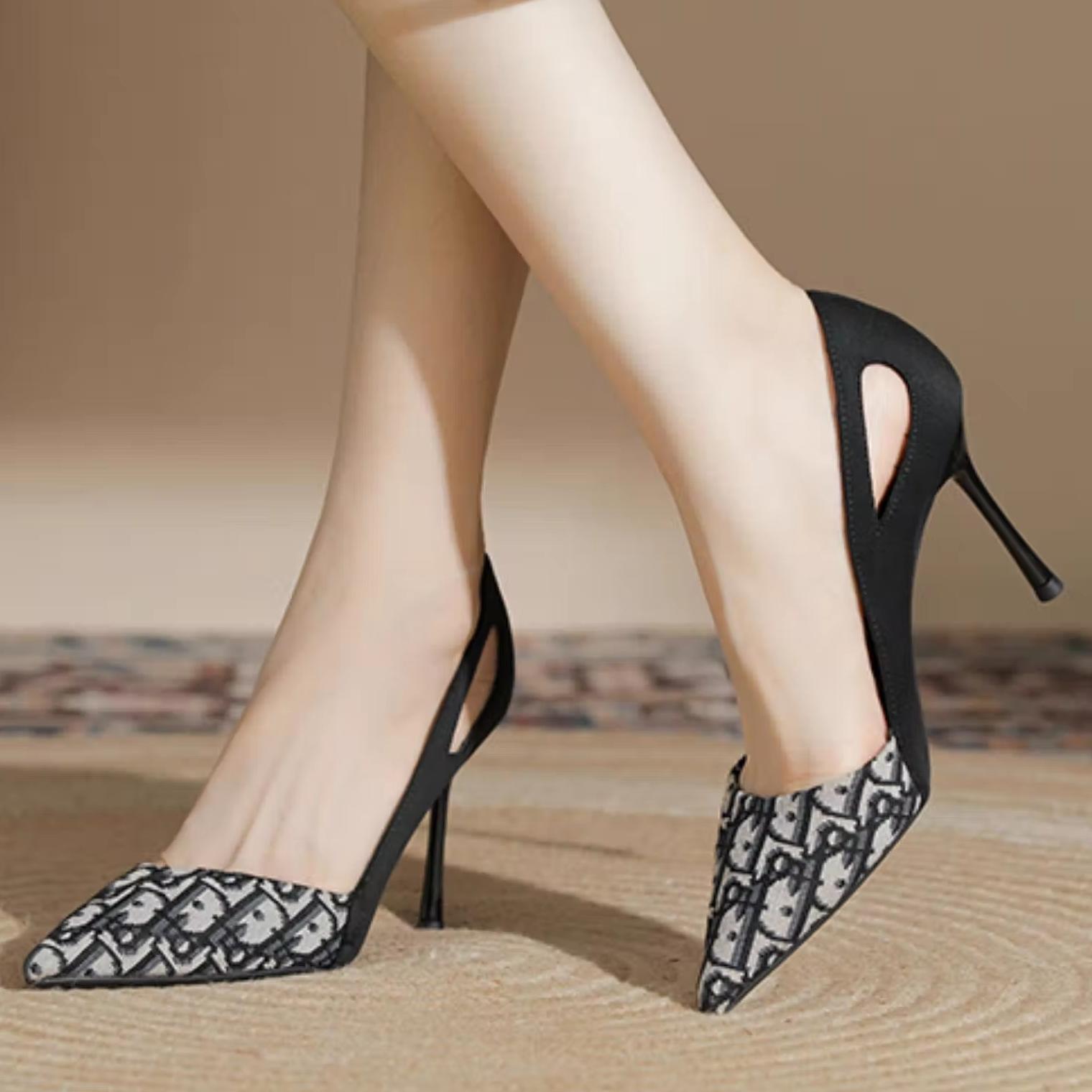 흑백 배색 고급스러운 여성용 하이힐 2025 신상품, 명품 스타일 패션 뾰족코 얇은 굽 신발, 얕은 입구의 패션 슈즈스토어 가기