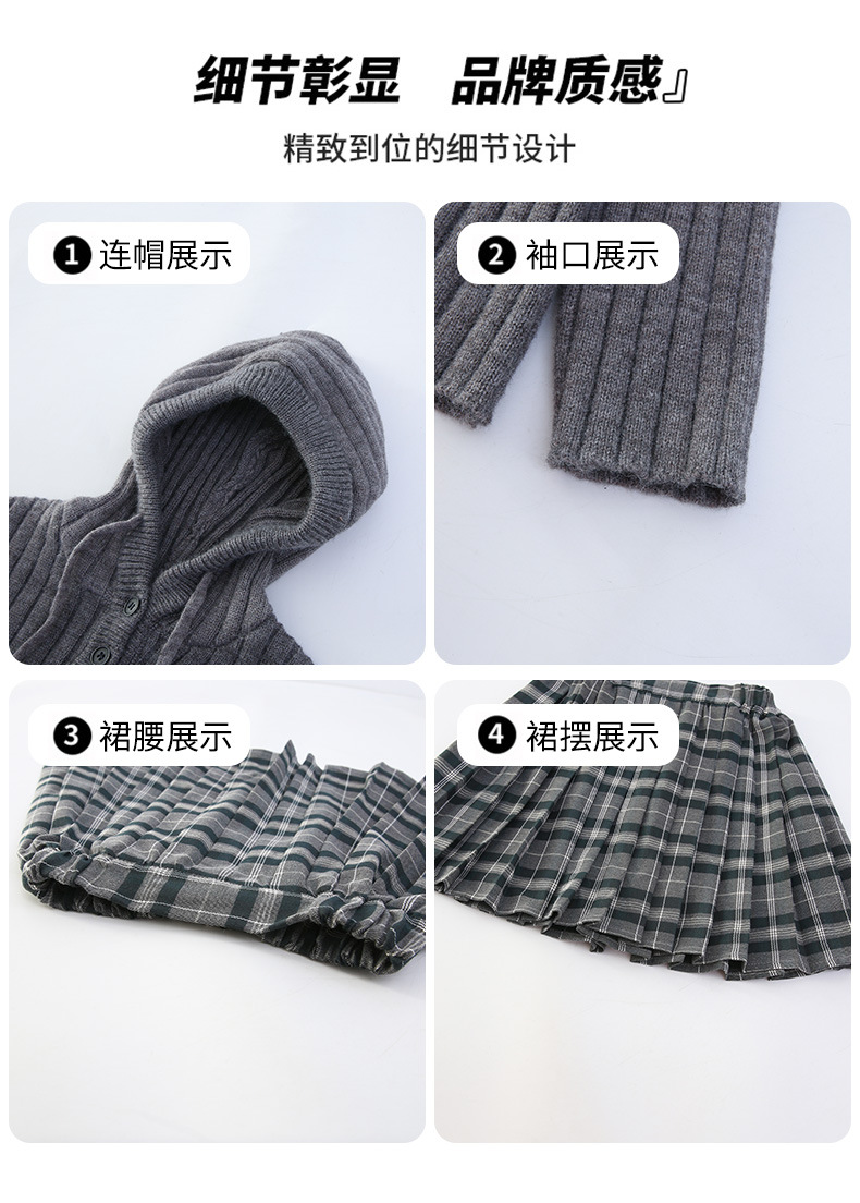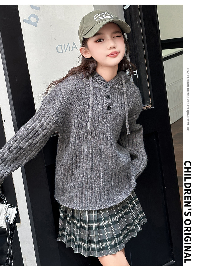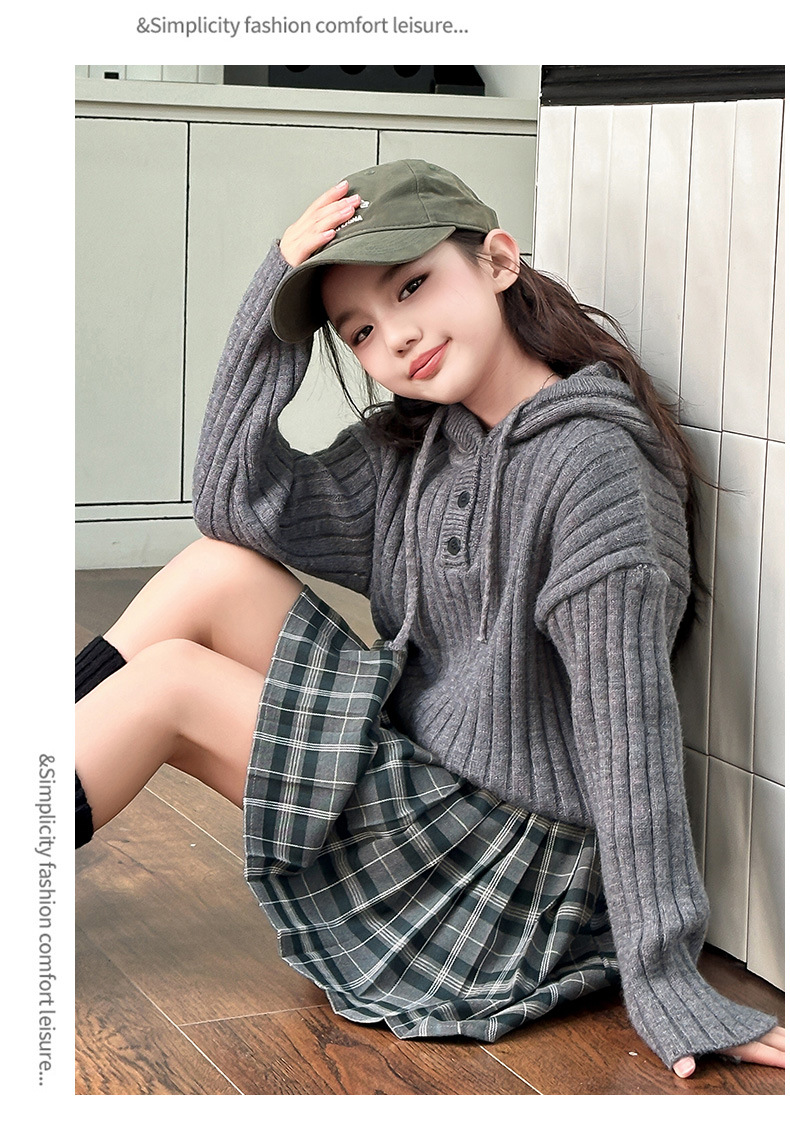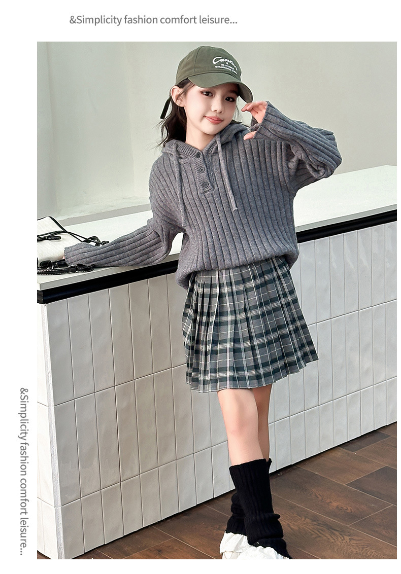 2026 봄/가을 신상 한국 스타일 아동용 후드 스웨터 여아용 루즈핏 부드러운 후드티 체크무늬 스커트 세트스토어 가기