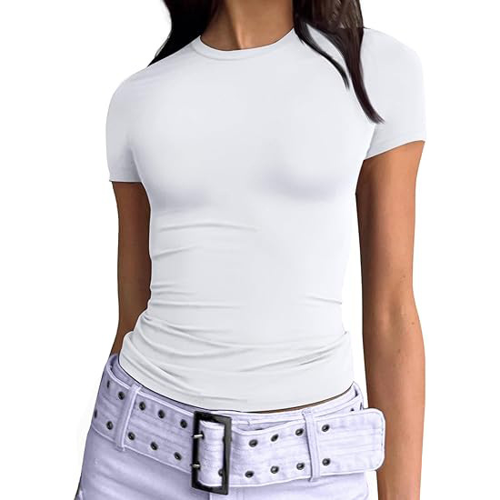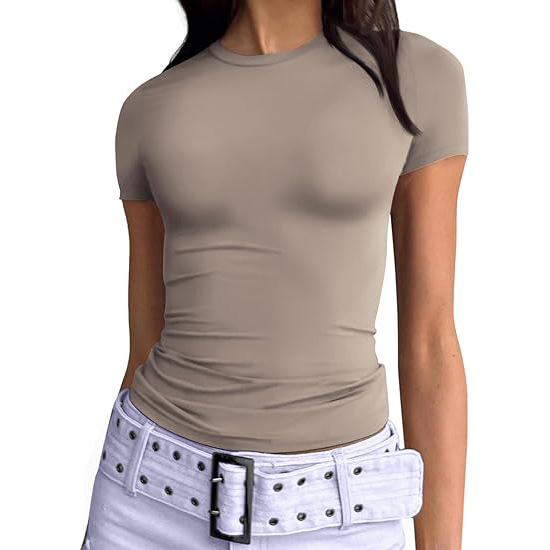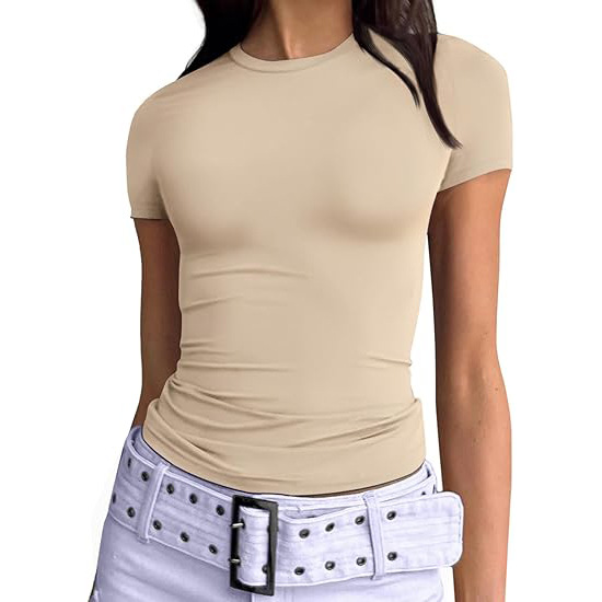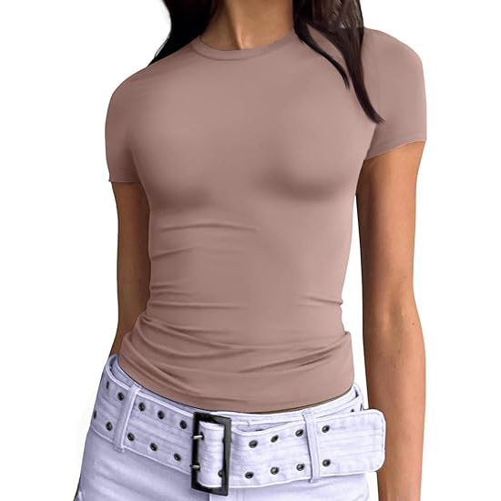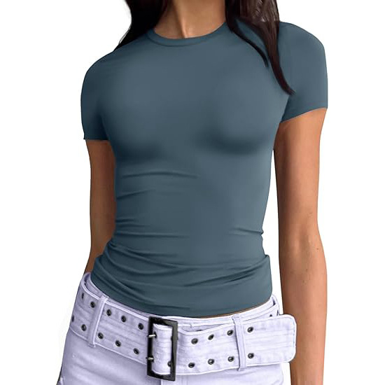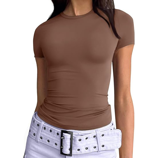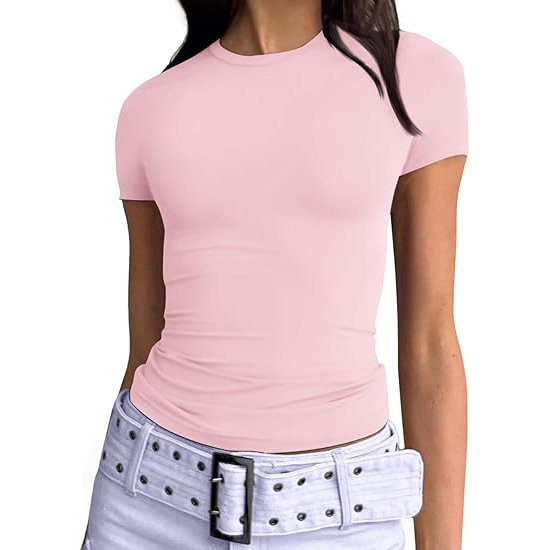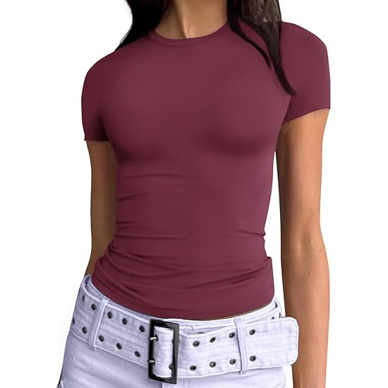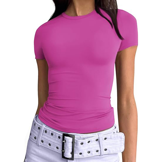 여성용 크로스보더 풀오버 탑, 라운드넥 티셔츠, 슬림핏 이너웨어 반팔 티셔츠, 여성용 단색 핫걸 반팔스토어 가기