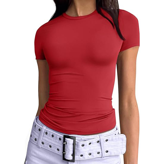 여성용 크로스보더 풀오버 탑, 라운드넥 티셔츠, 슬림핏 이너웨어 반팔 티셔츠, 여성용 단색 핫걸 반팔