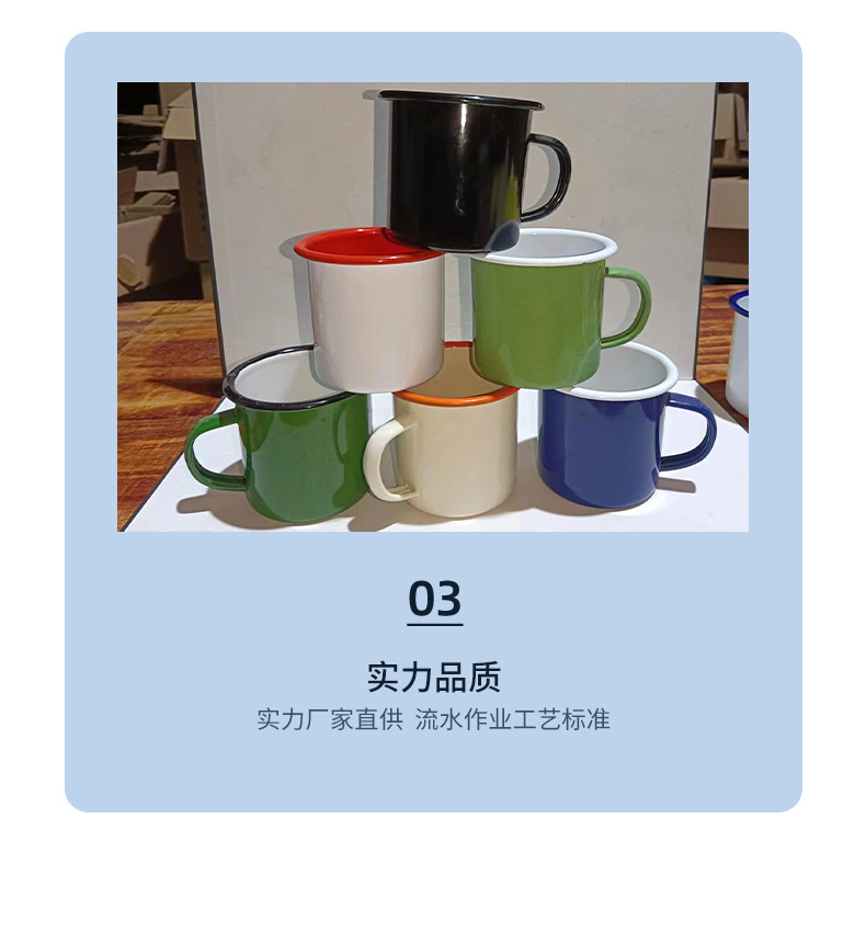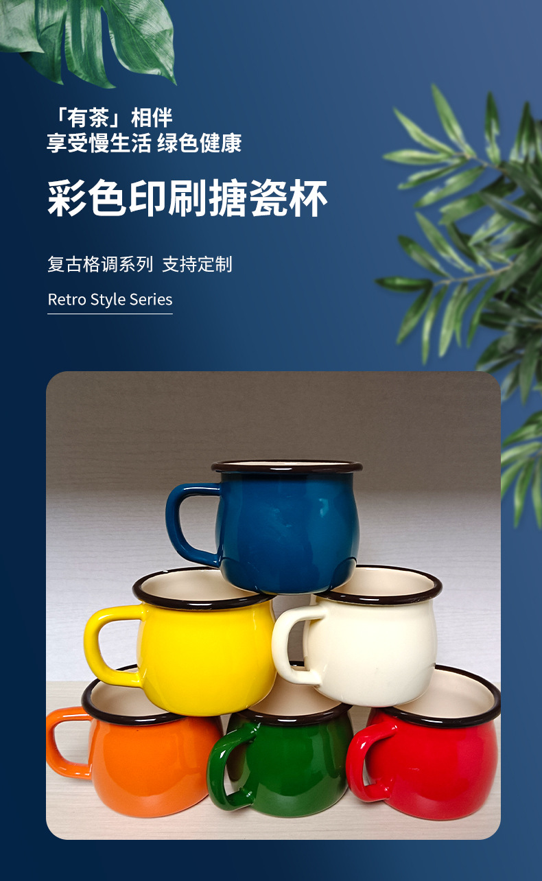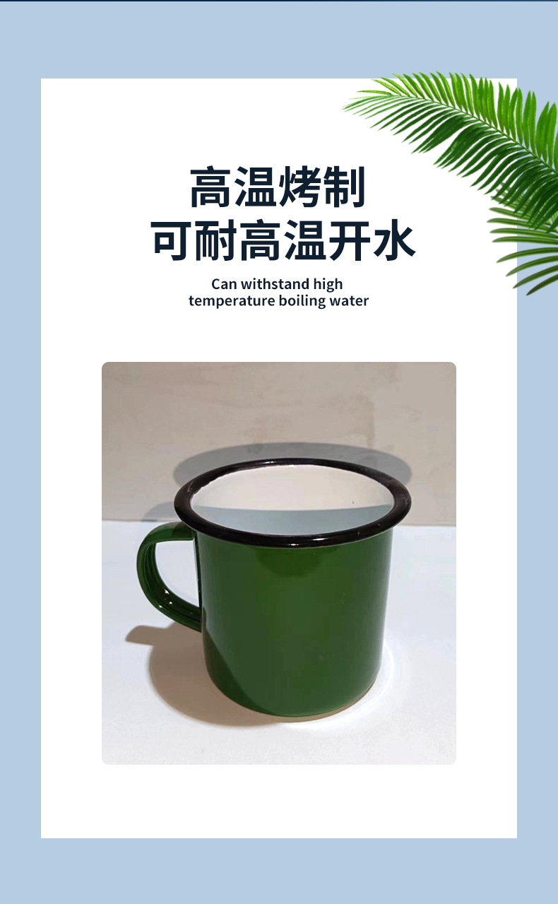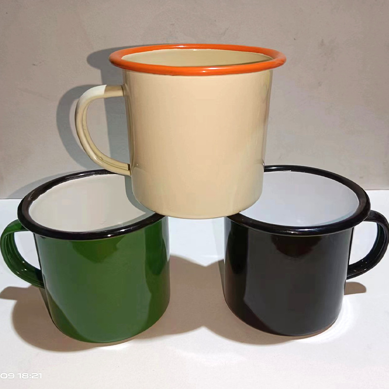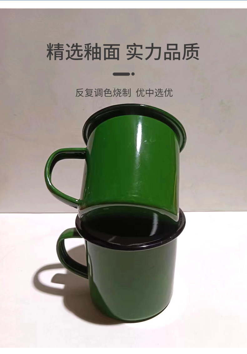 두꺼운 에나멜 머그잔 공장 맞춤형 로고 에나멜 에나멜 차 항아리 복고풍 향수 육군 녹색 창조적 인 인용문 컵스토어 가기