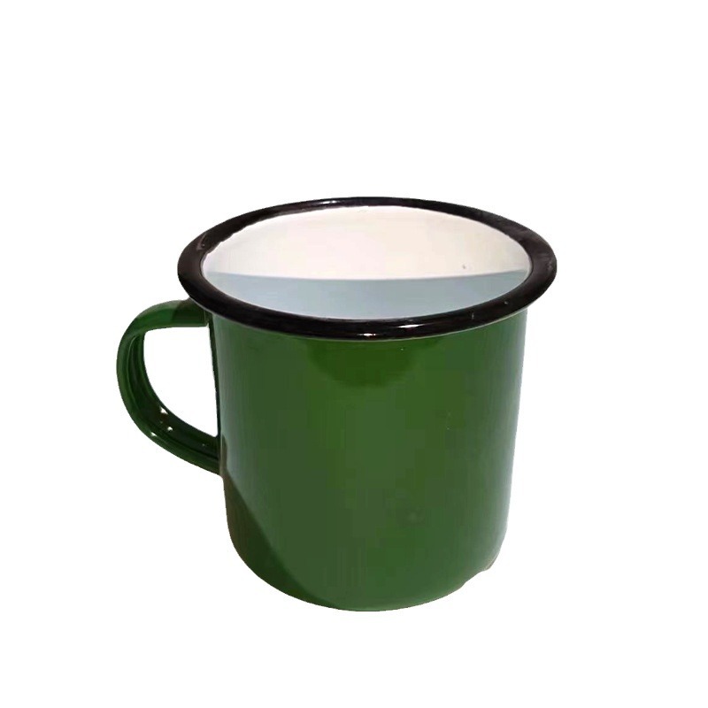 두꺼운 에나멜 머그잔 공장 맞춤형 로고 에나멜 에나멜 차 항아리 복고풍 향수 육군 녹색 창조적 인 인용문 컵