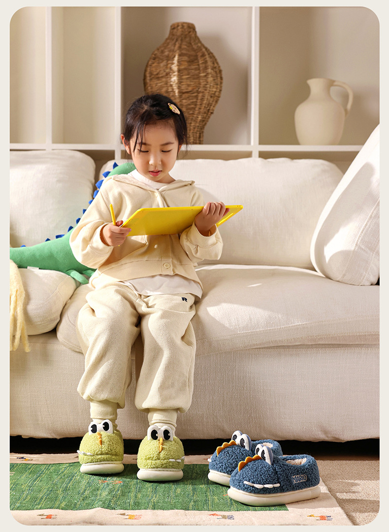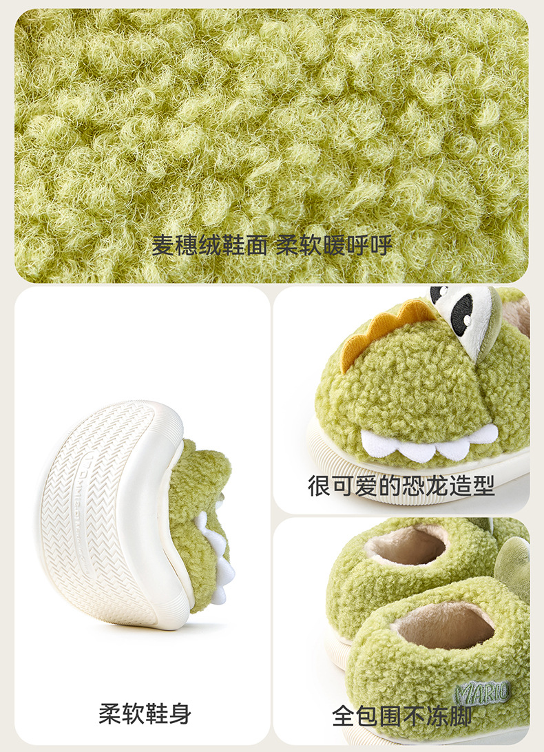 해피 메리 보이즈 코튼 슈즈 2024 겨울 새 만화 작은 공룡 기모 따뜻한 소녀 어린이 푹신한 신발