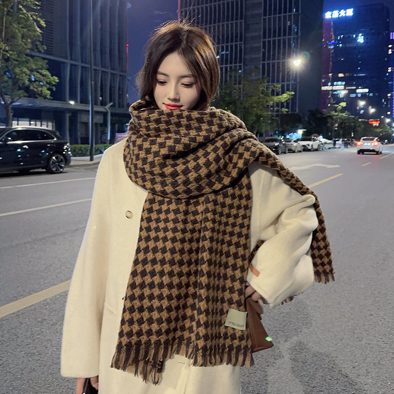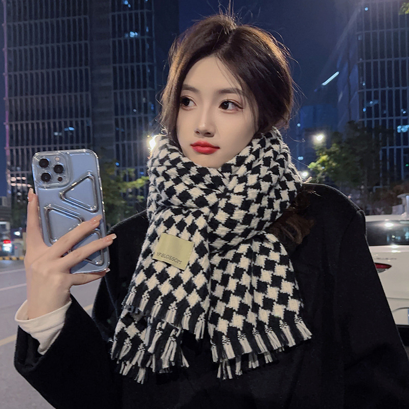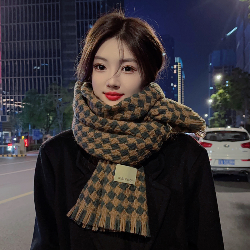 가을과 겨울 새로운 대비 다이아몬드 격자 무늬 스카프 여자의 겨울 두꺼운 캐시미어 목도리 니트 따뜻한 목 올매치