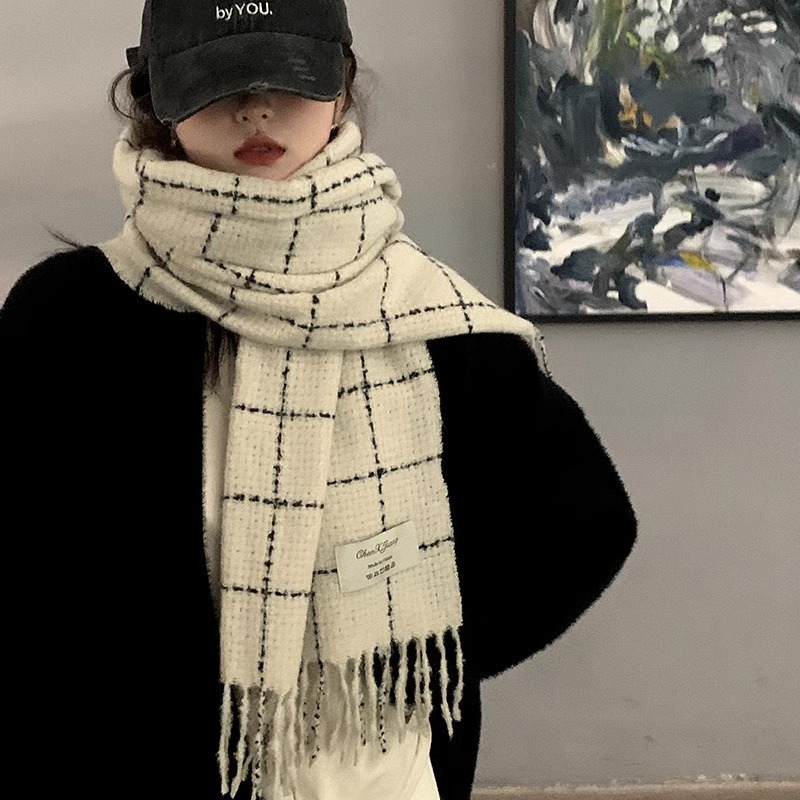 가을과 겨울 새로운 대비 다이아몬드 격자 무늬 스카프 여자의 겨울 두꺼운 캐시미어 목도리 니트 따뜻한 목 올매치스토어 가기