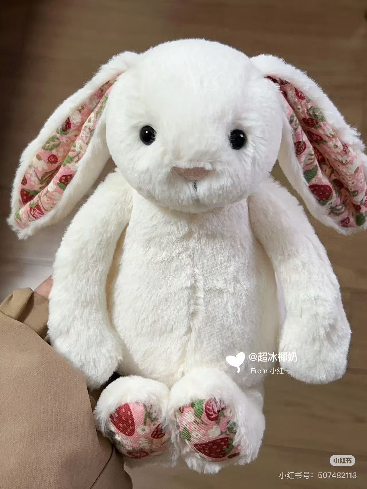 • 꽃무늬 딸기 귀 토끼 인형 51cm