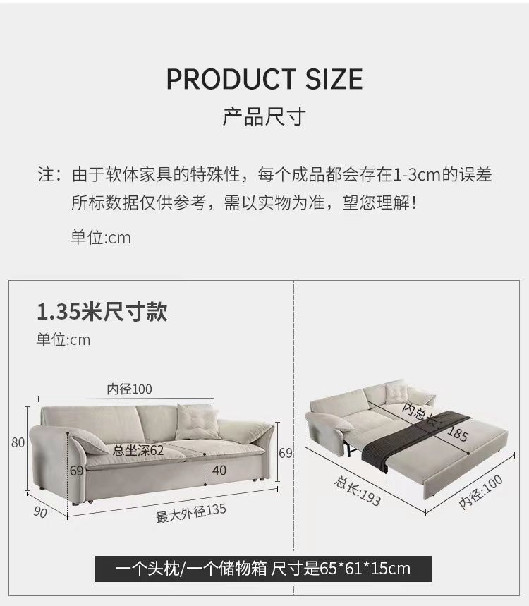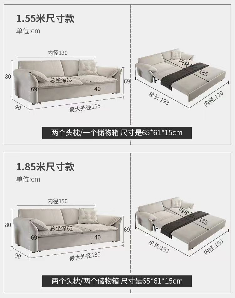 이쉬 백스터 코끼리 귀 소파 침대 다기능 이중 용도 원피스 작은 아파트 젖빛 헝겊 크림 바람 접기