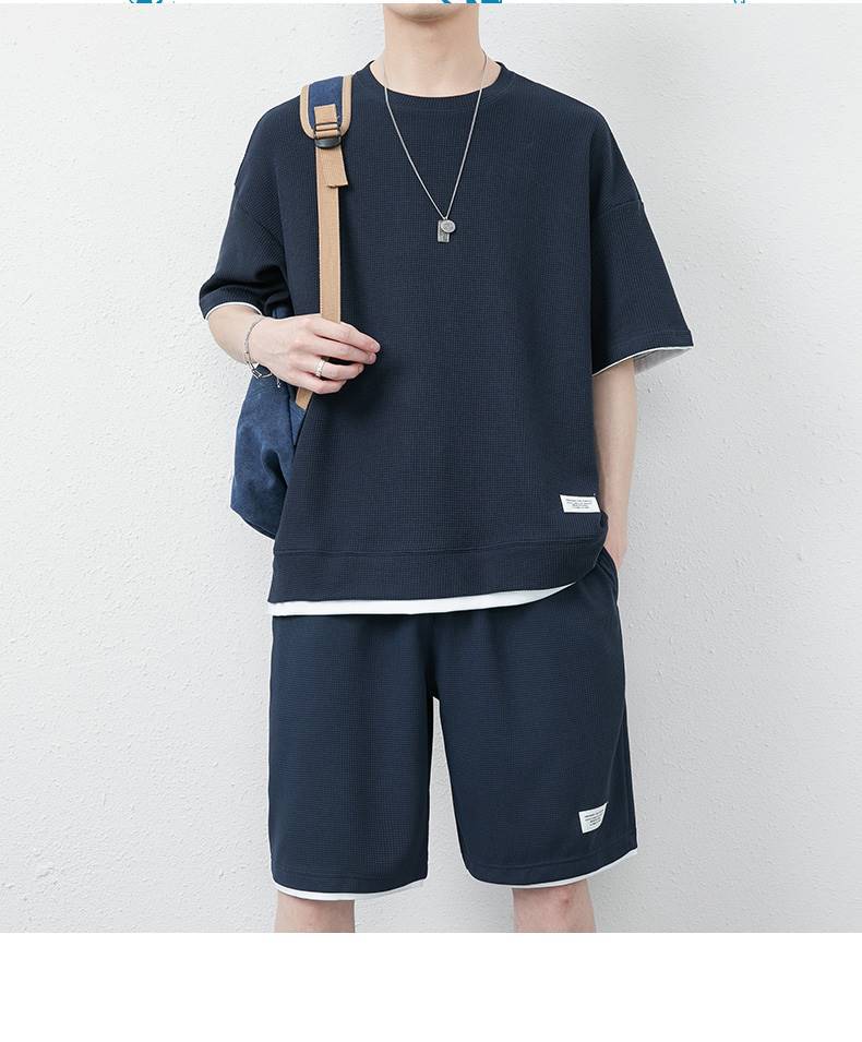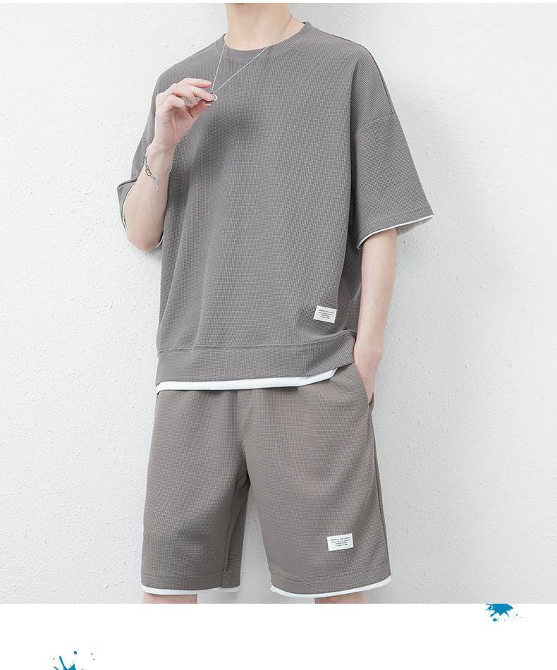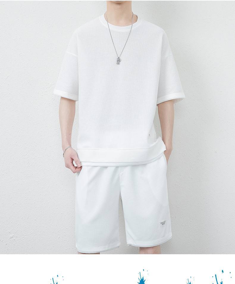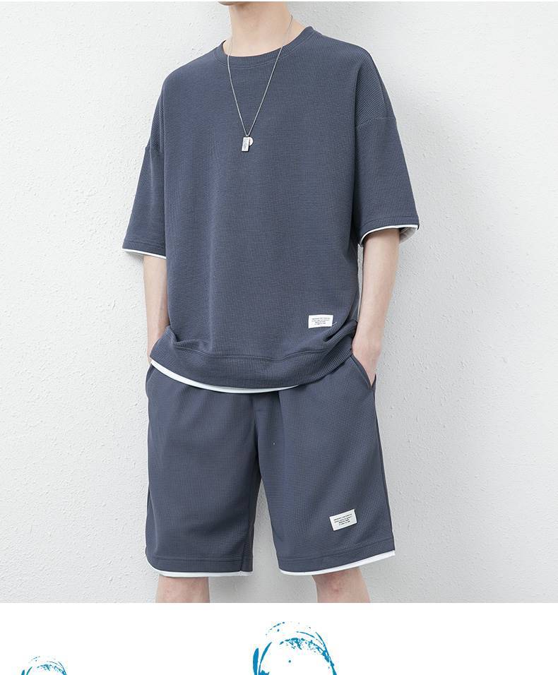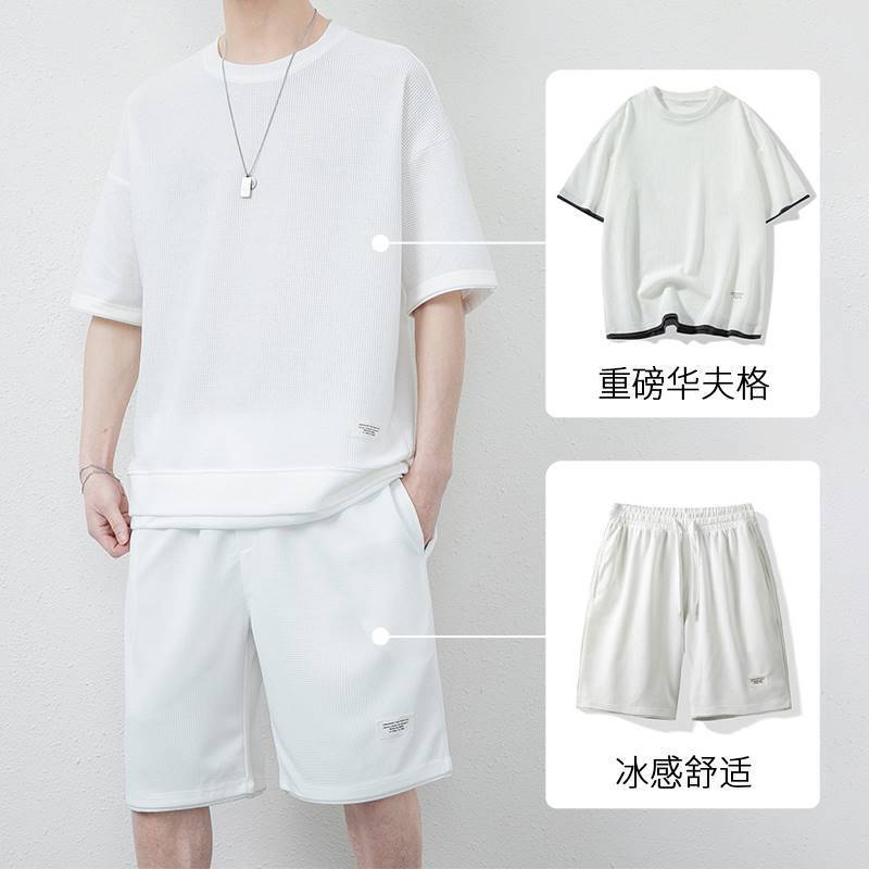 와플 캐주얼 세트 남성 여름 아이스 실크 반팔 티셔츠 남성 의류 세트 잘 생긴 패션 브랜드 스포츠 의류스토어 가기