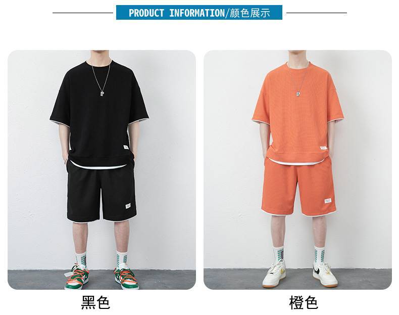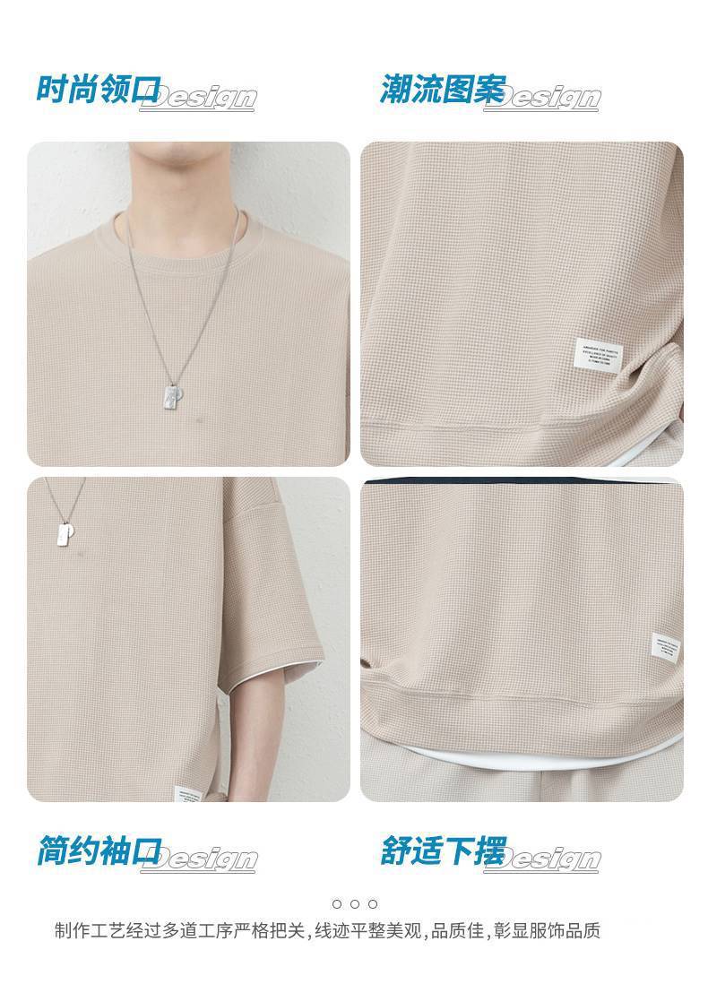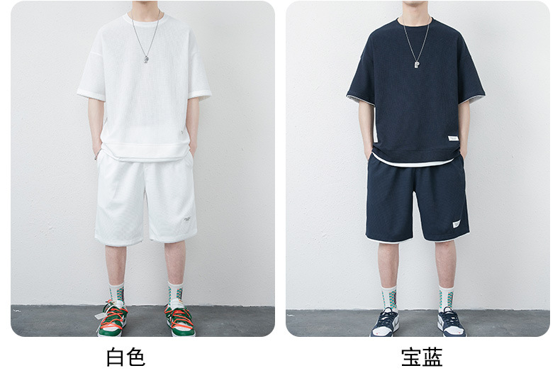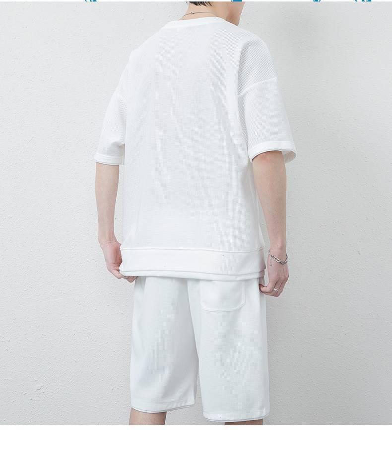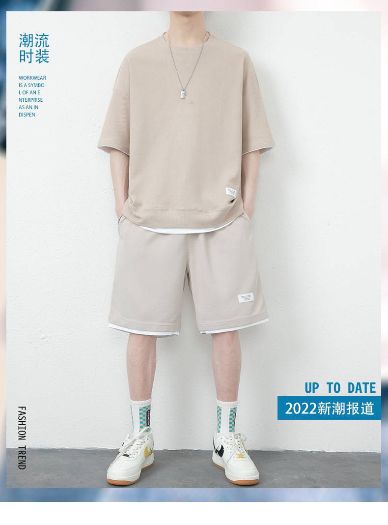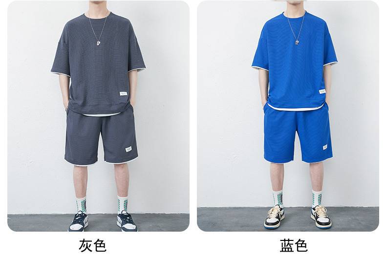 와플 캐주얼 세트 남성 여름 아이스 실크 반팔 티셔츠 남성 의류 세트 잘 생긴 패션 브랜드 스포츠 의류스토어 가기