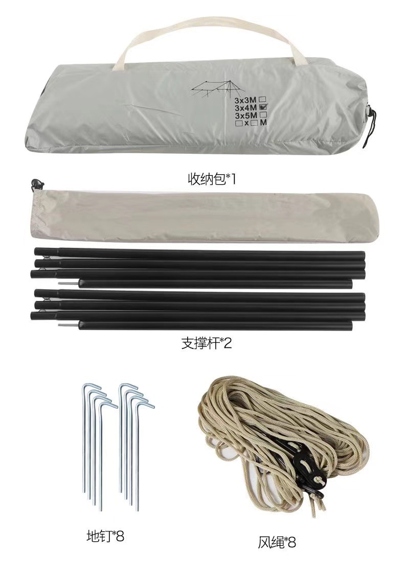 • 3m*4.5m+ 보관 가방(4개 막대 포함)