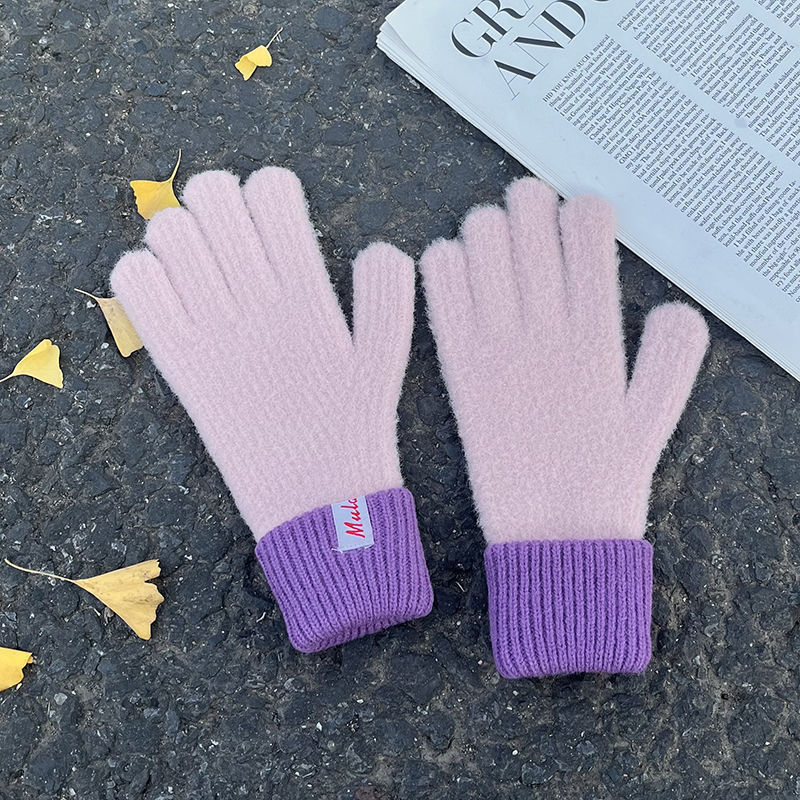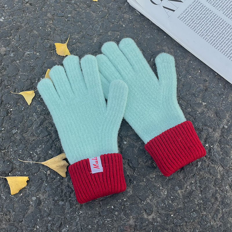 한국식 양모 장갑 트렌디 니트 캐시미어 장갑 여성용 겨울 새 터치 스크린 기모 따뜻한 두꺼운 감기용 손가락