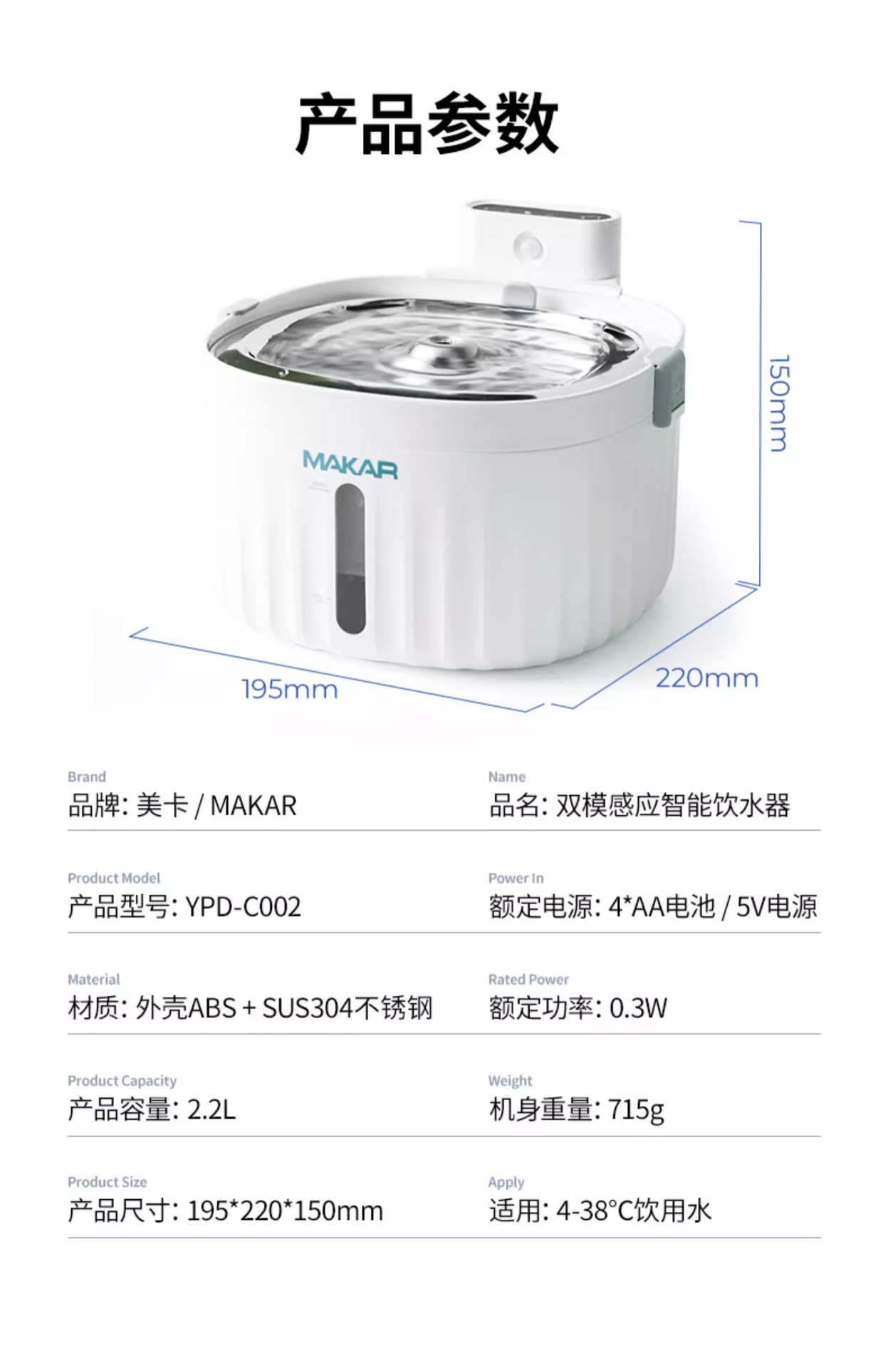 미카 고양이 급수기 센서형 스마트 애완동물 급수기 순환 필터 무전원 급수기 자동 급수기