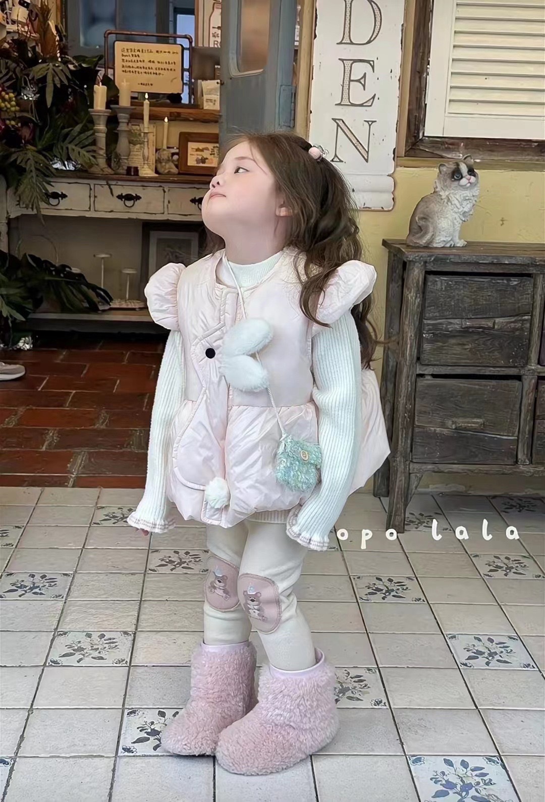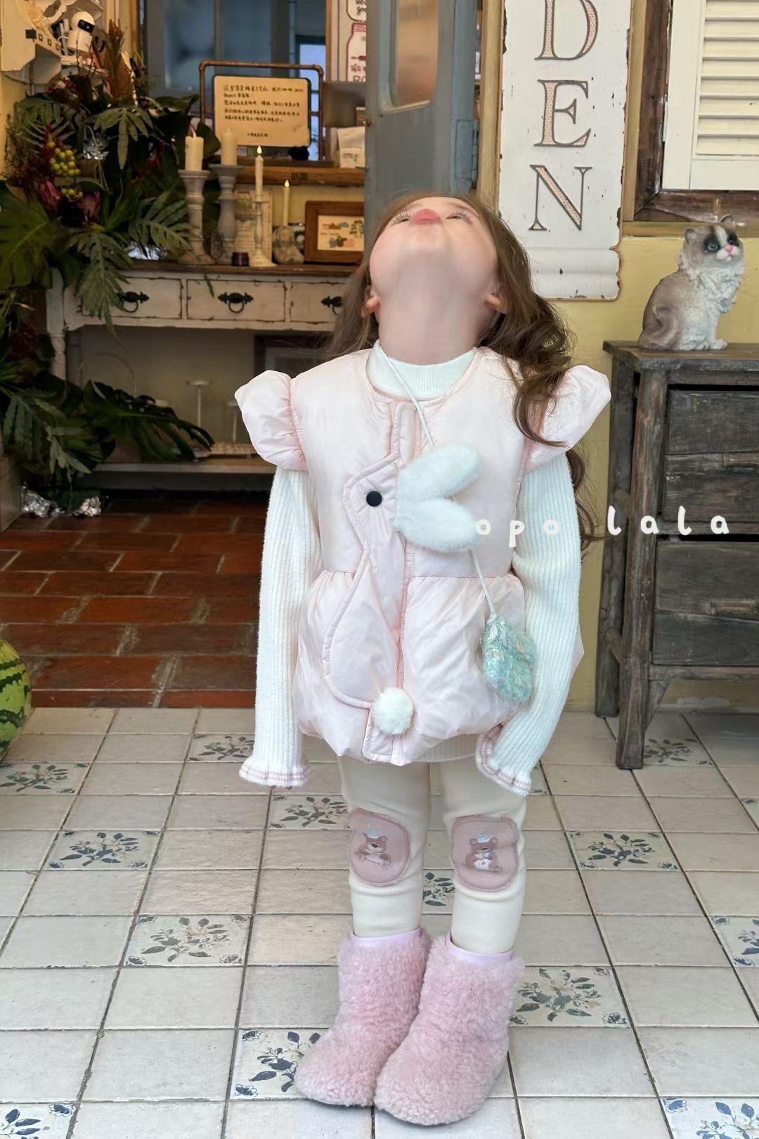 겨울 새 소녀 아동복 달콤한 한국 토끼 다운 조끼 조커 스웨터 만화 기모 6970스토어 가기