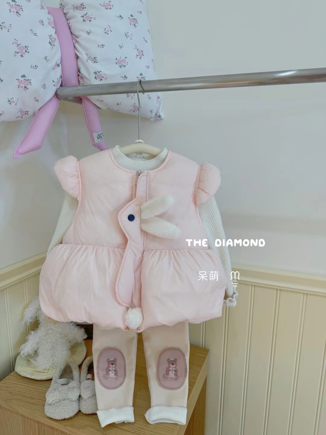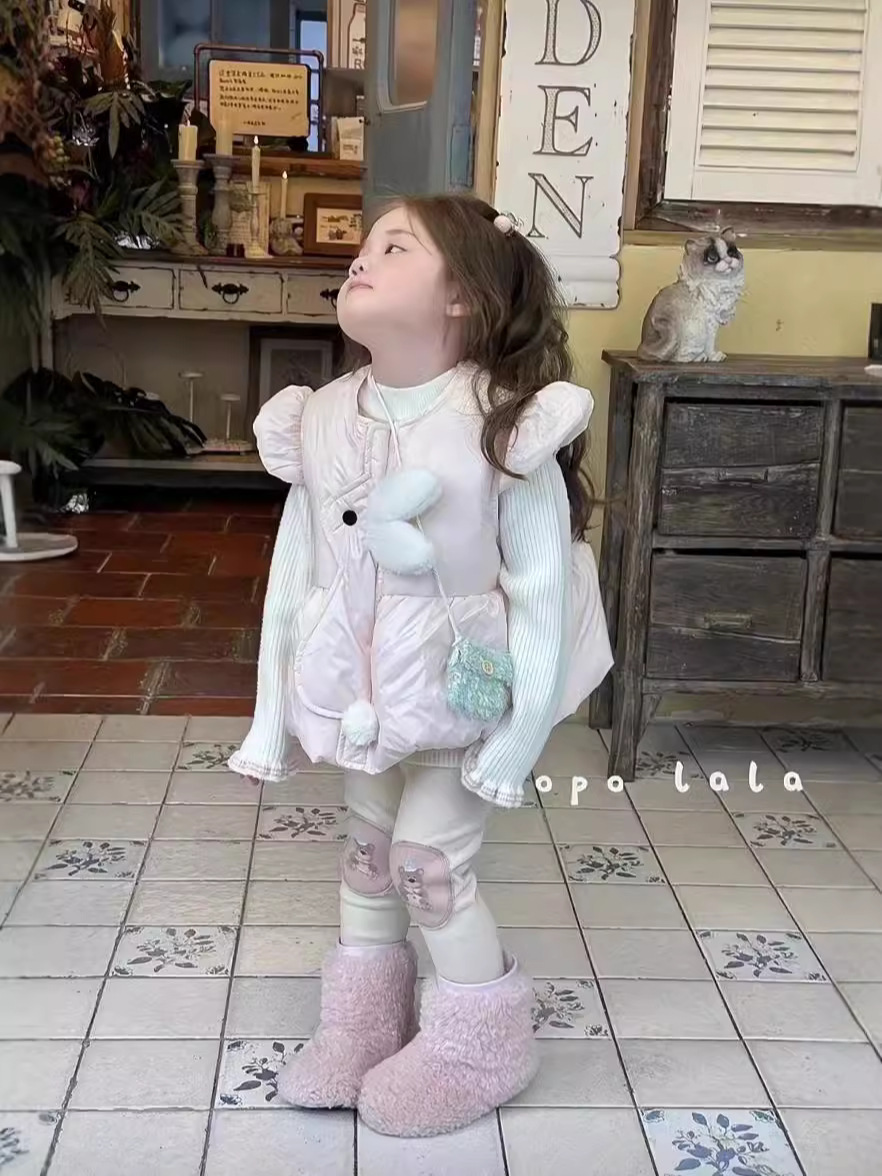 겨울 새 소녀 아동복 달콤한 한국 토끼 다운 조끼 조커 스웨터 만화 기모 6970