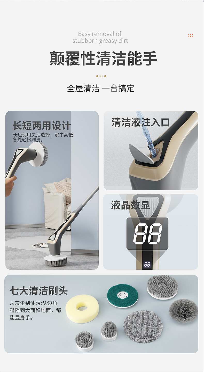 다기능 전기 청소 브러시 가정용 어항 자동차 주방 욕실 청소 유물 무선 편리한 핸드 헬드 브러시