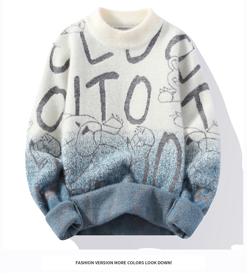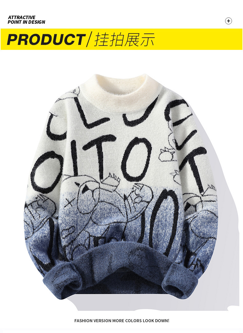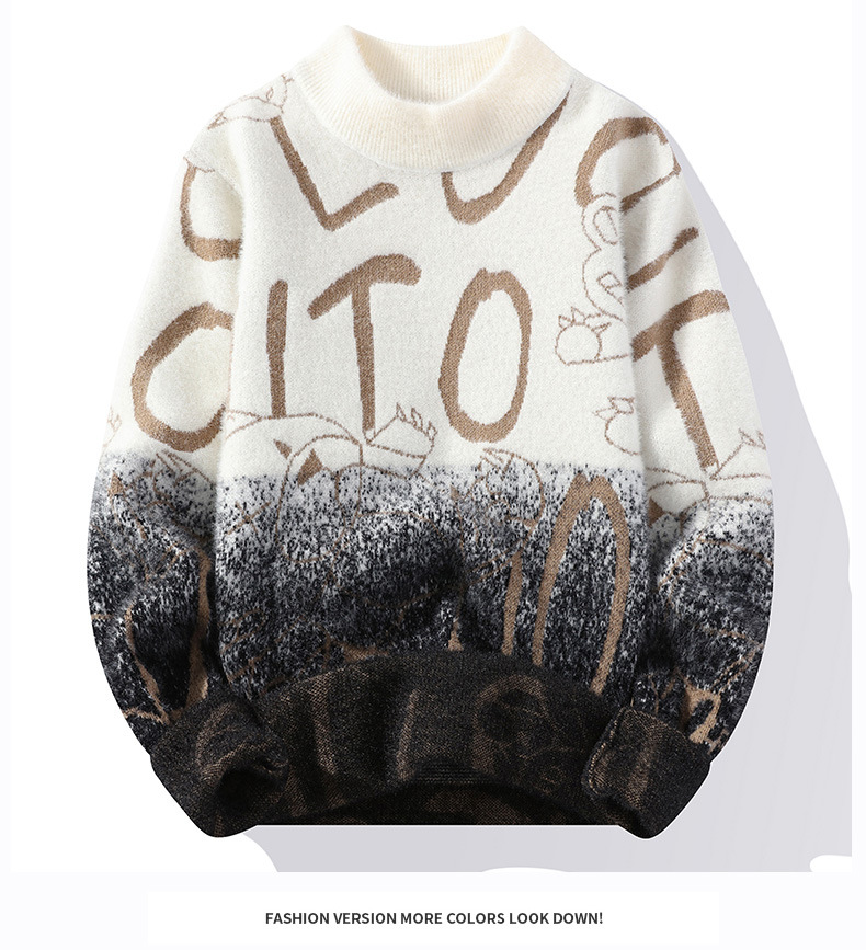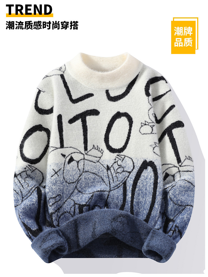 터틀넥 스웨터 남자의 가을과 겨울 새로운 15 중학생 두꺼운 따뜻한 니트 스웨터 13 소년 점진적 컬러 스웨터스토어 가기