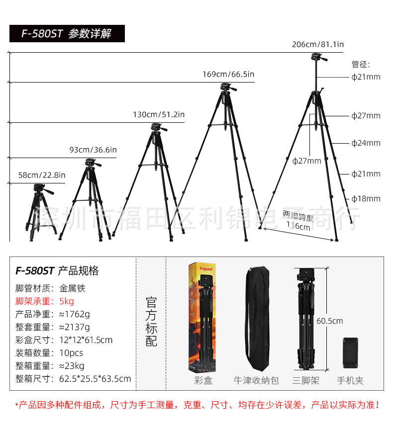 F580ST 카메라 삼각대 휴대 전화 라이브 방송 브래킷 망원경 야외 2 m 낚시 조명 브래킷스토어 가기