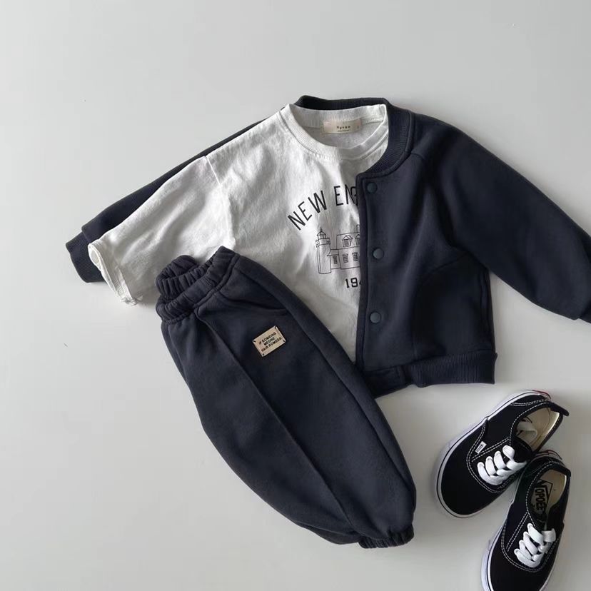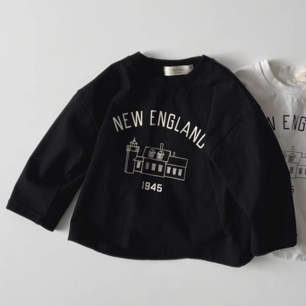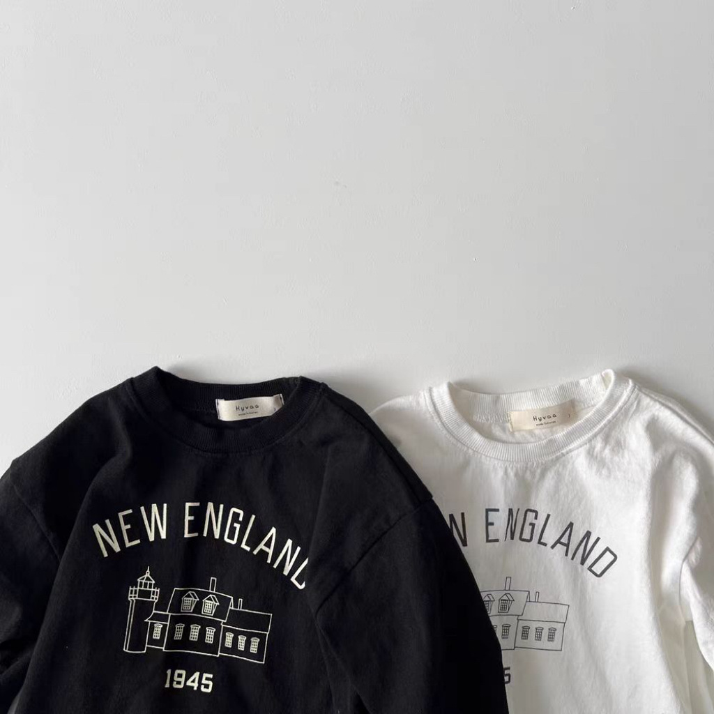 한국 스타일 봄 가을 라운드 넥 티셔츠 어린이 소년 소녀 아기 코티지 패턴 긴 소매 탑 간단한 올 매치 패션