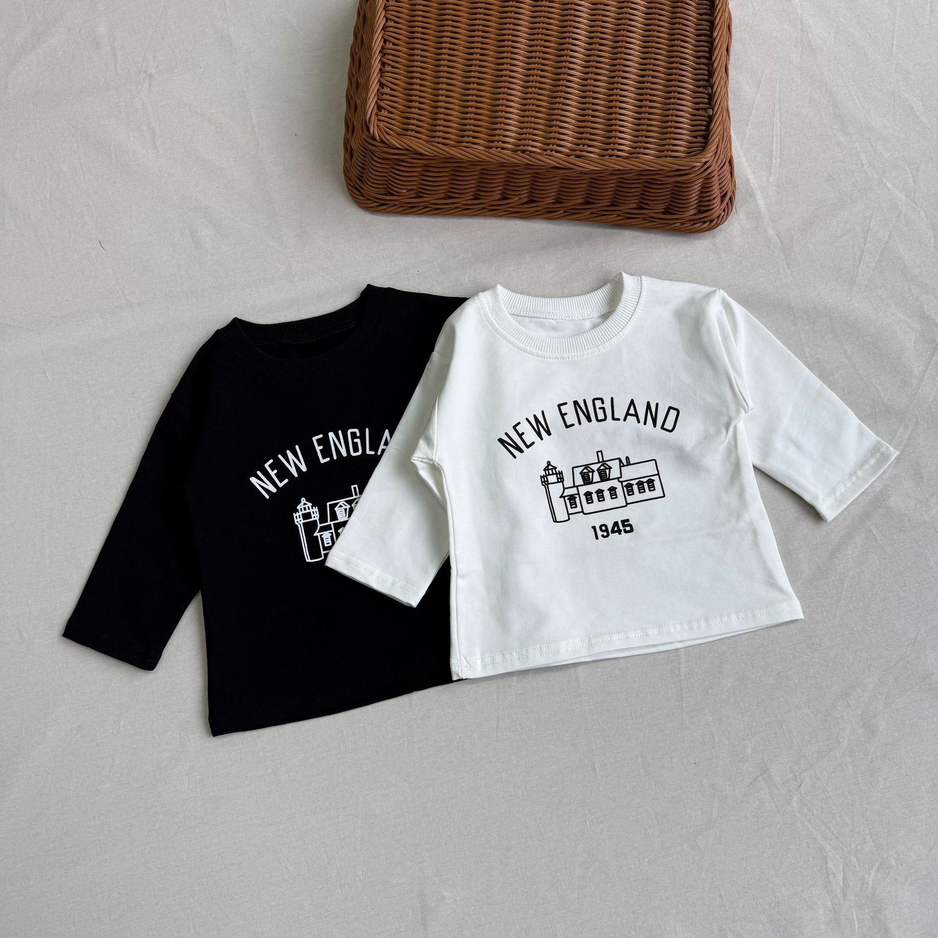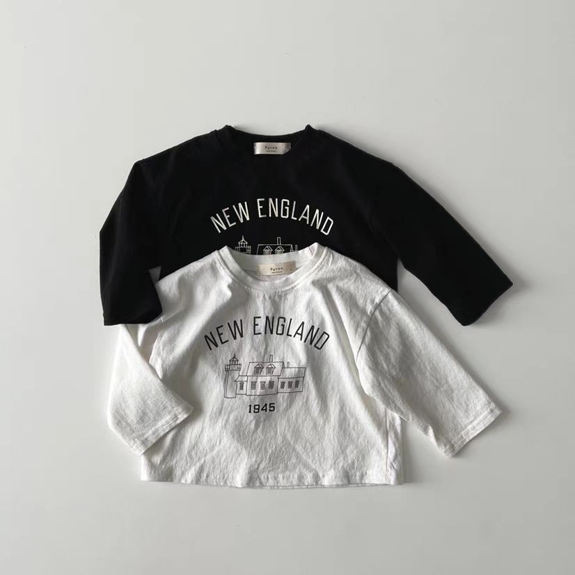 한국 스타일 봄 가을 라운드 넥 티셔츠 어린이 소년 소녀 아기 코티지 패턴 긴 소매 탑 간단한 올 매치 패션스토어 가기
