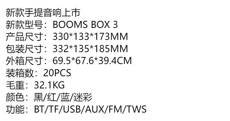 국경 간 핫 BOOMS BOX3 RGB 라이트 아레스 3 세대 블루투스 스피커 서브 우퍼 야외 휴대용스토어 가기