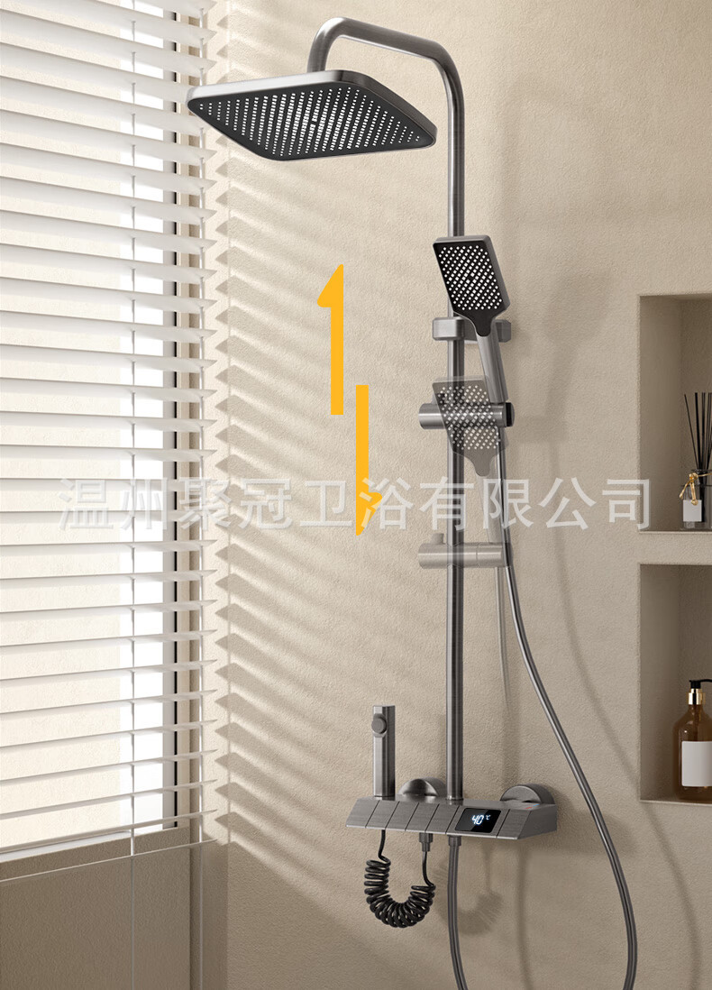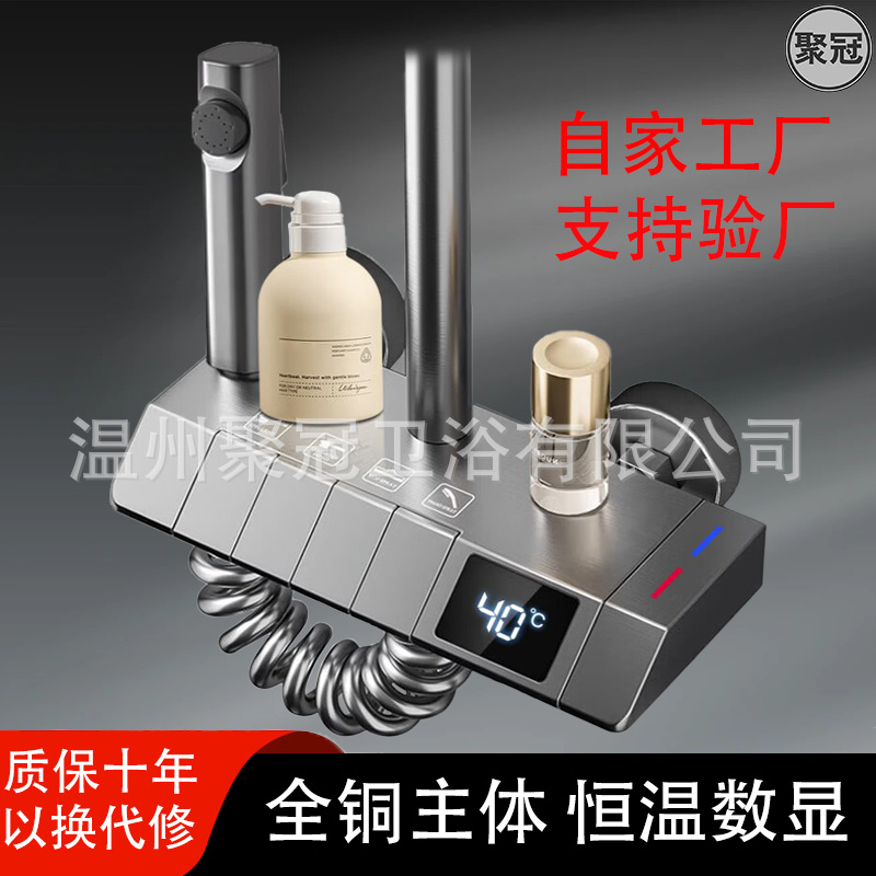 샤워 헤드 세트 건 그레이 전체 구리 샤워 헤드 가정용 항온 부스터 노즐 욕실 샤워스토어 가기
