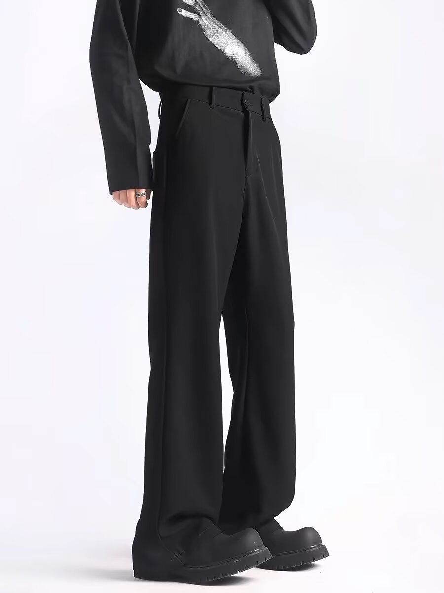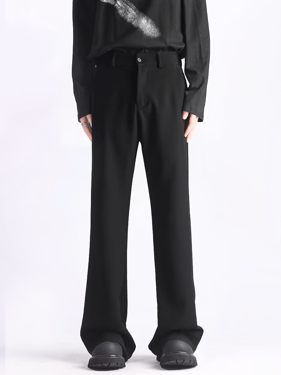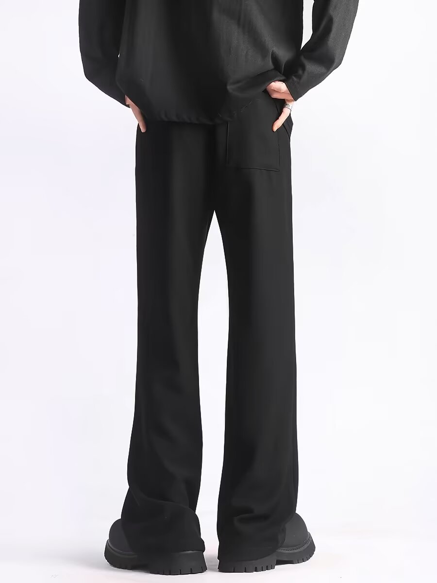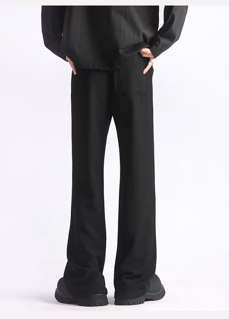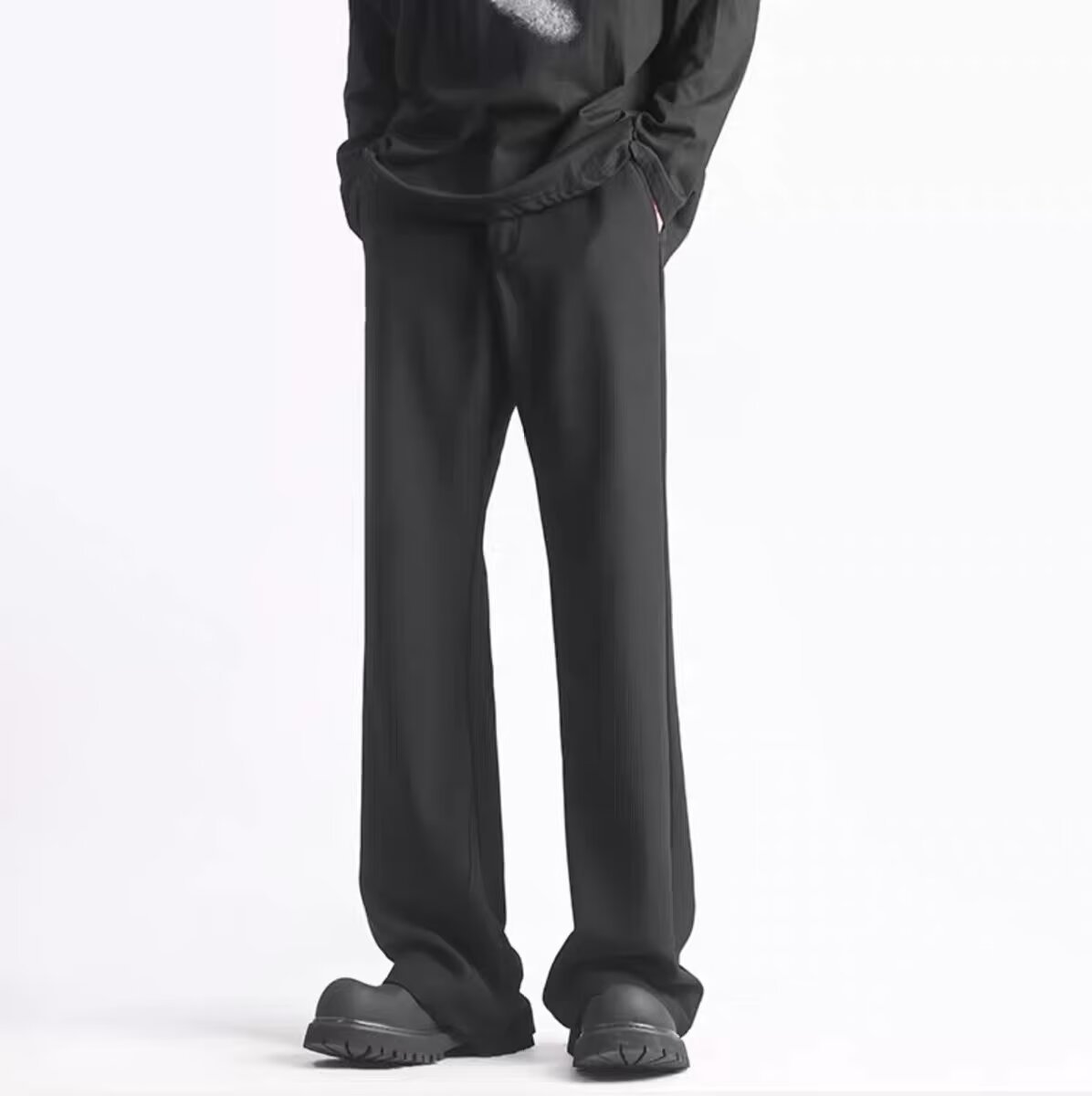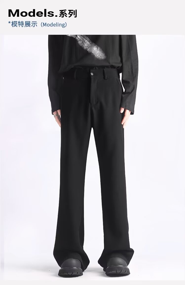 검은 바지 남성용 봄과 가을 새로운 스트레이트 클린 핏 마이크로 라 하이 엔드 캐주얼 긴 바지