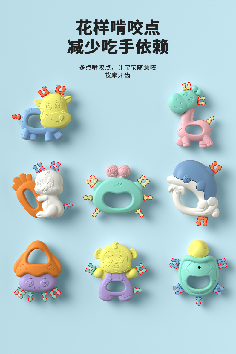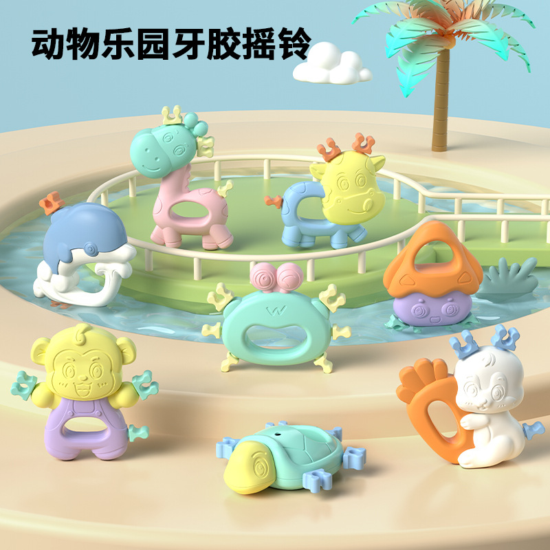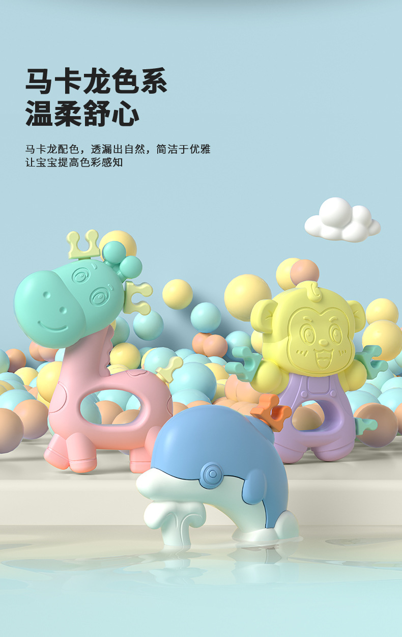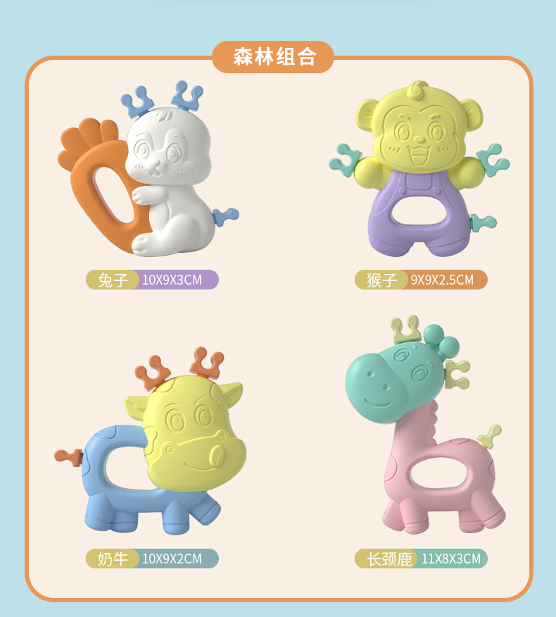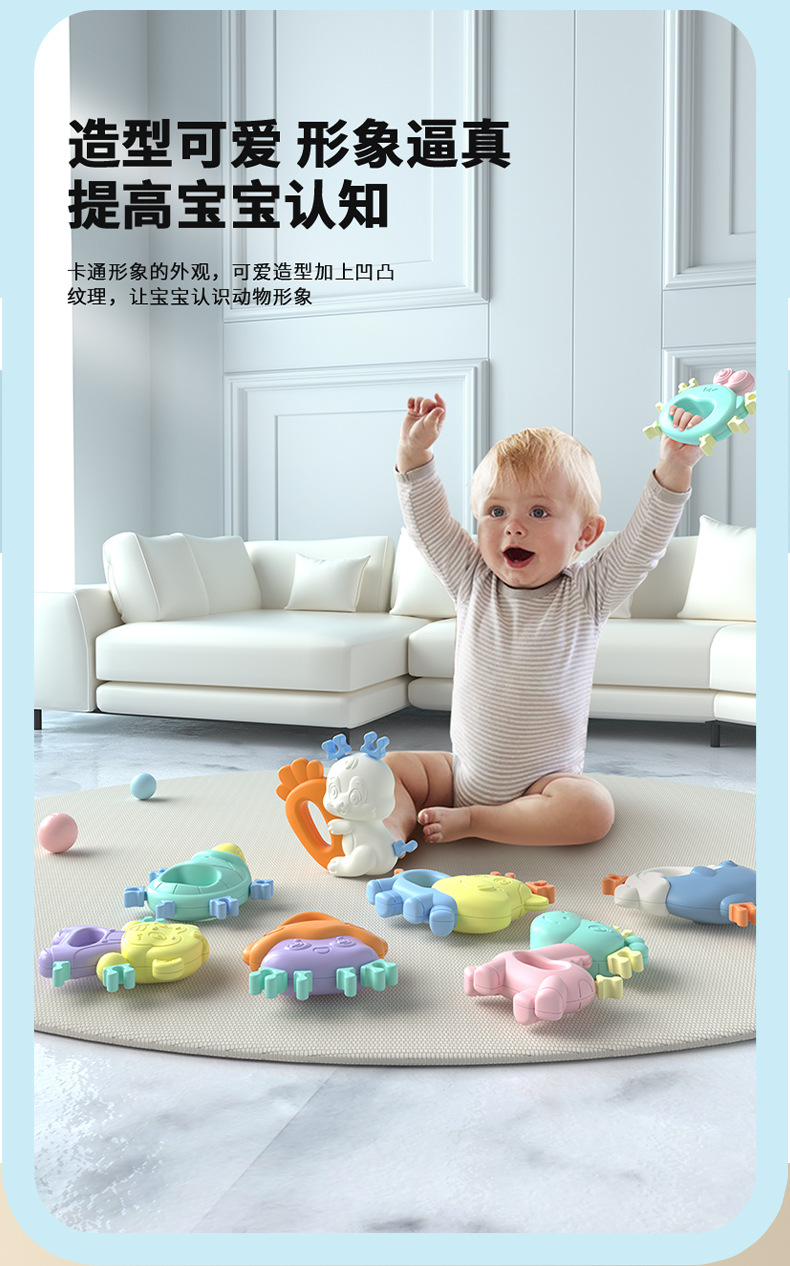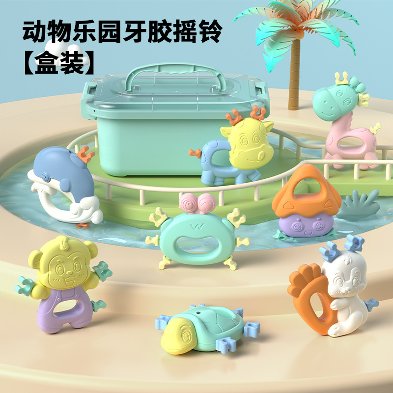 아기는 끓일 수 있고 씹을 수 있습니다. 손 딸랑이 장난감 아기 0-1 세 딸랑이 신생아 유아 Teether 교육 장난감스토어 가기