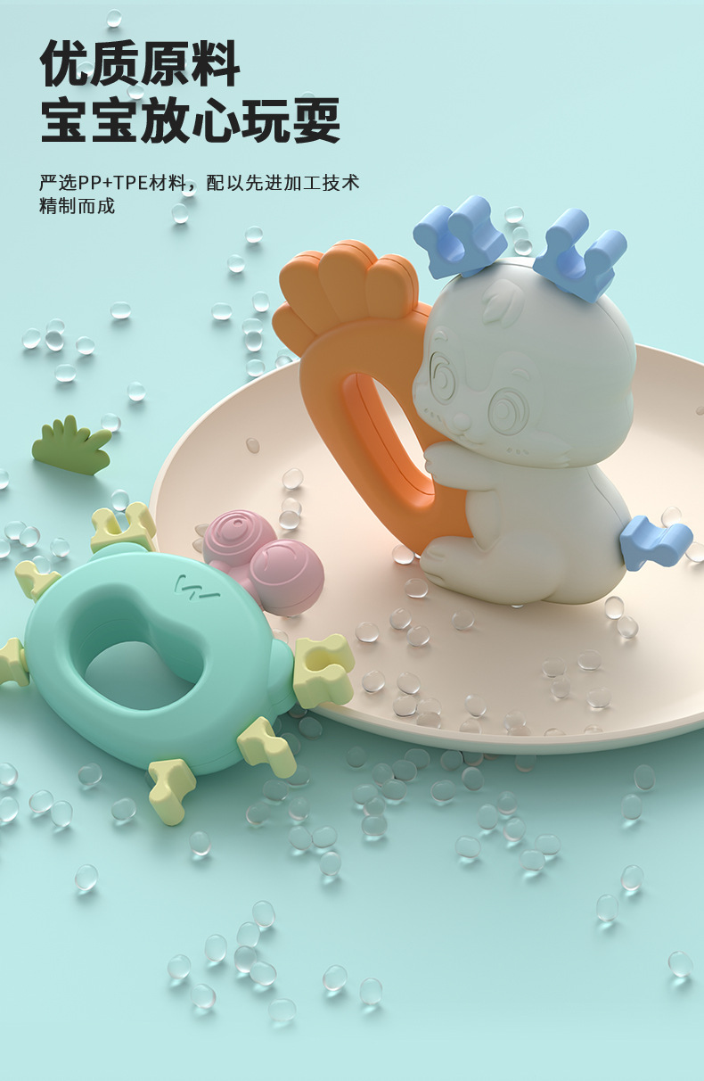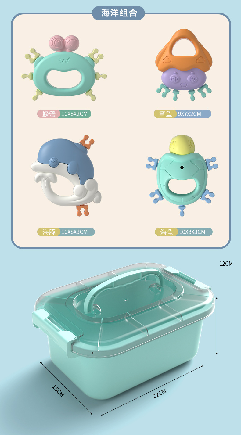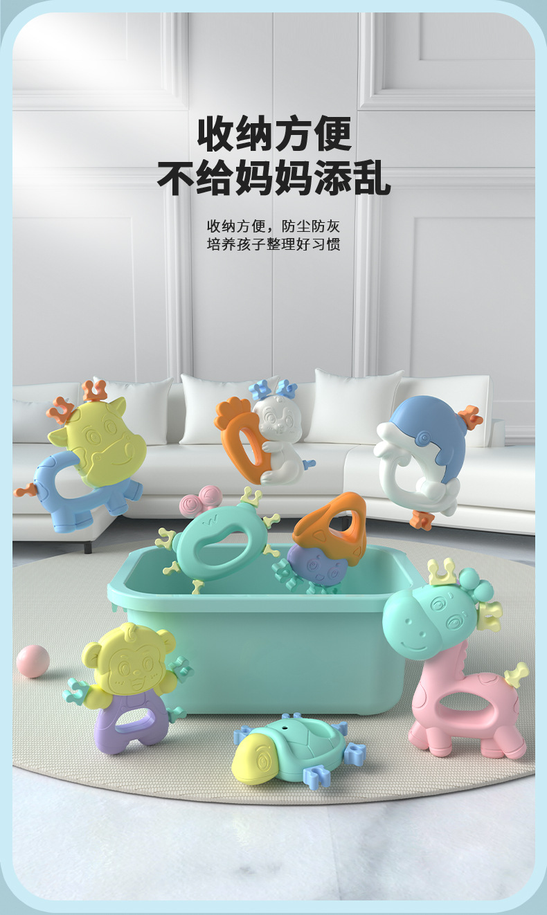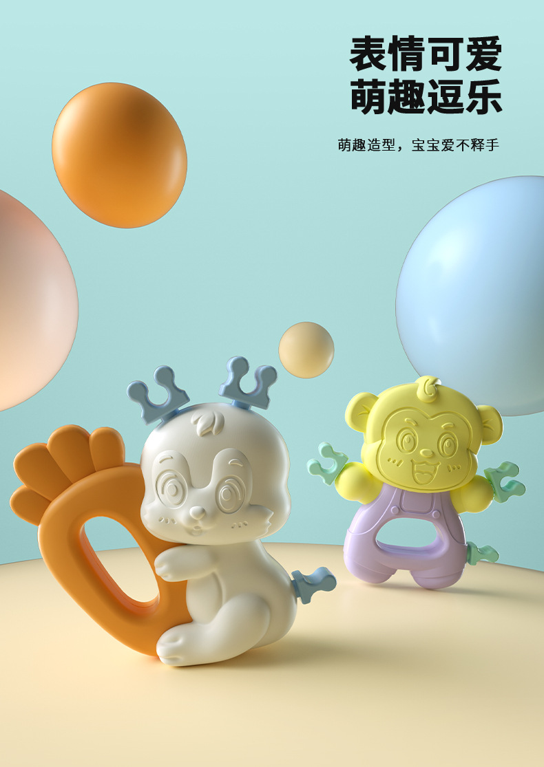 아기는 끓일 수 있고 씹을 수 있습니다. 손 딸랑이 장난감 아기 0-1 세 딸랑이 신생아 유아 Teether 교육 장난감스토어 가기