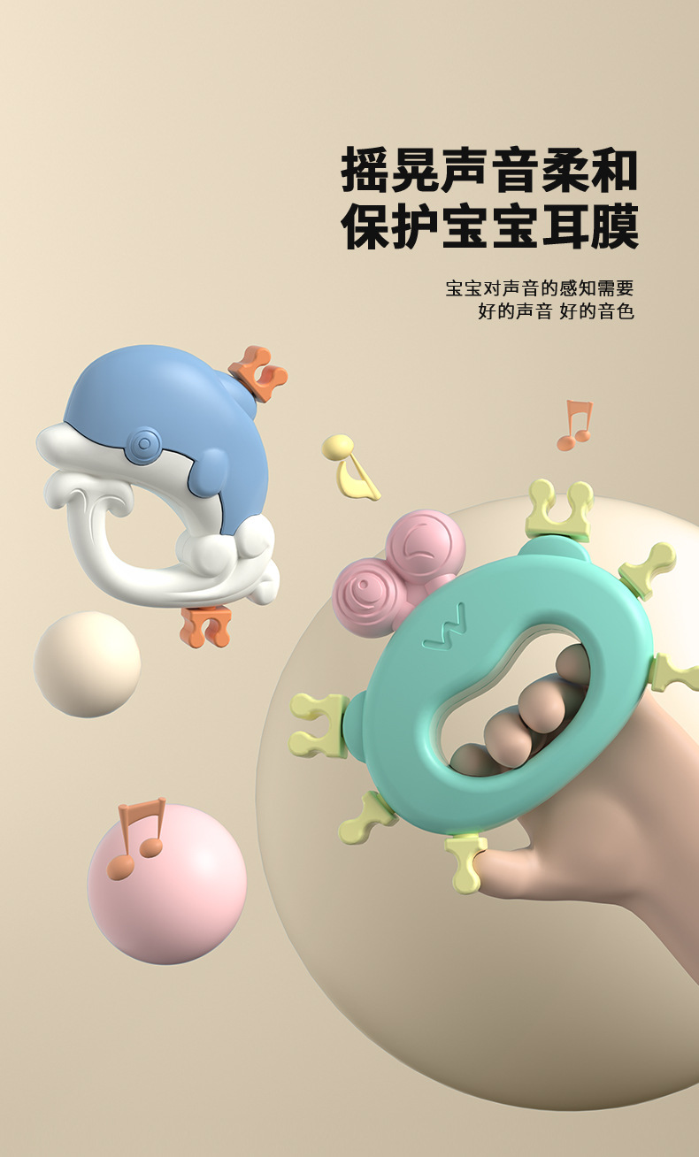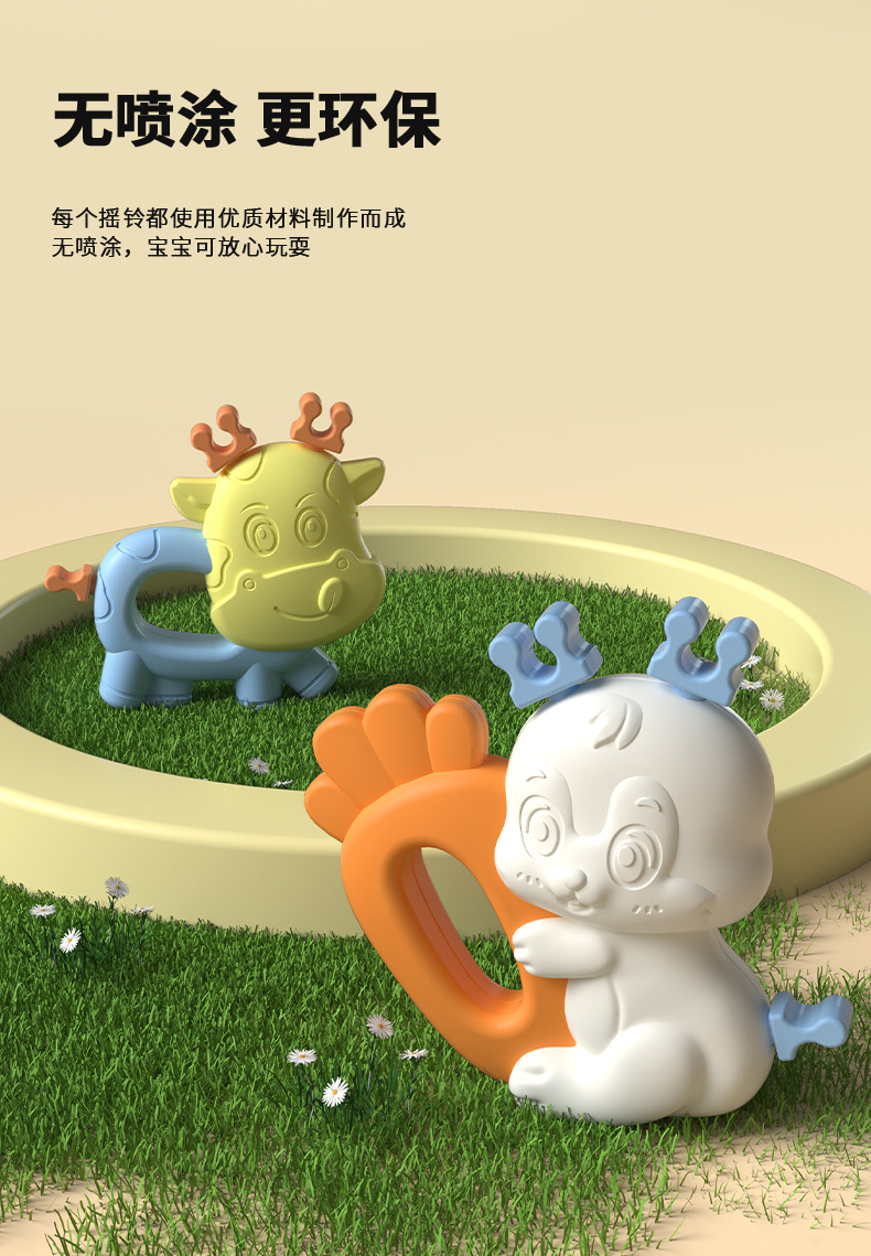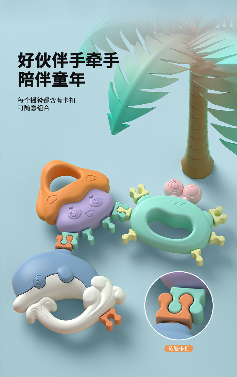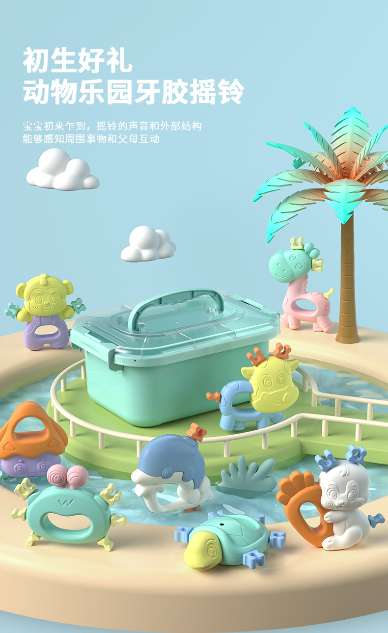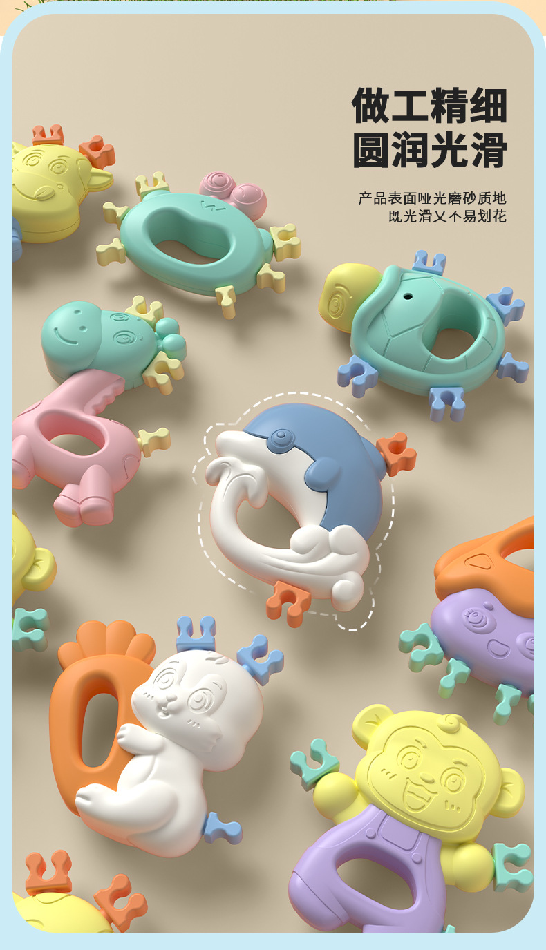 아기는 끓일 수 있고 씹을 수 있습니다. 손 딸랑이 장난감 아기 0-1 세 딸랑이 신생아 유아 Teether 교육 장난감스토어 가기
