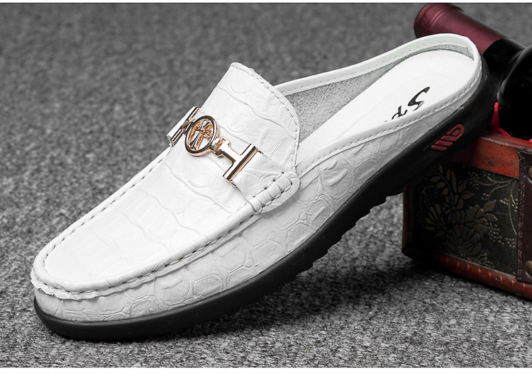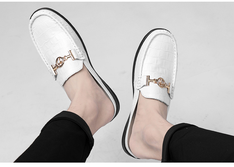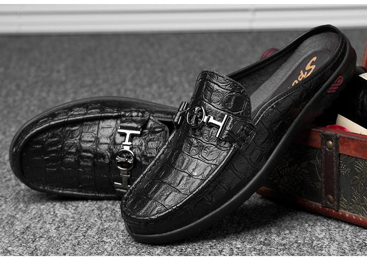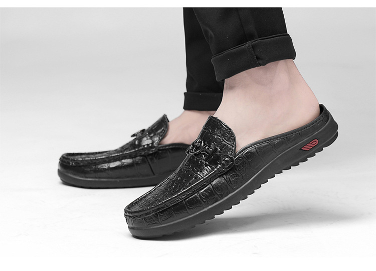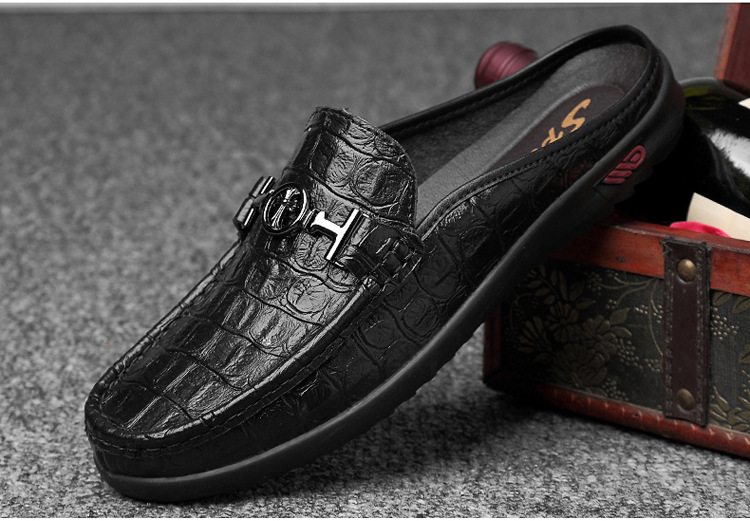 트렌디 한 게으른 피팅 신발 남성용 Cowhide 부드러운 밑창 가죽 신발 올 매치 캐주얼 남성용 힐프리 하프 슬리퍼스토어 가기