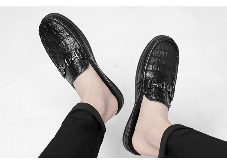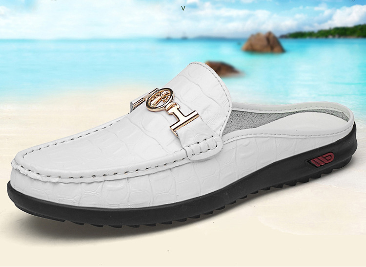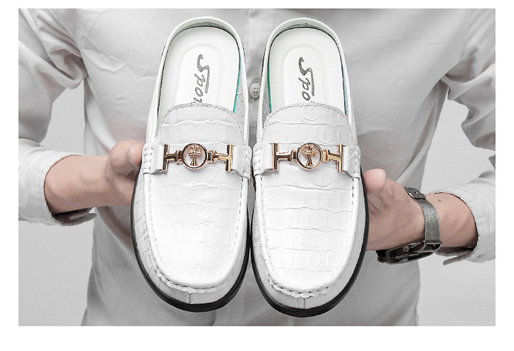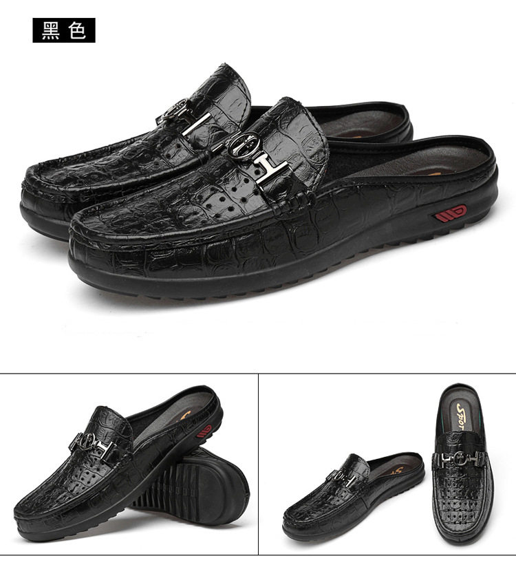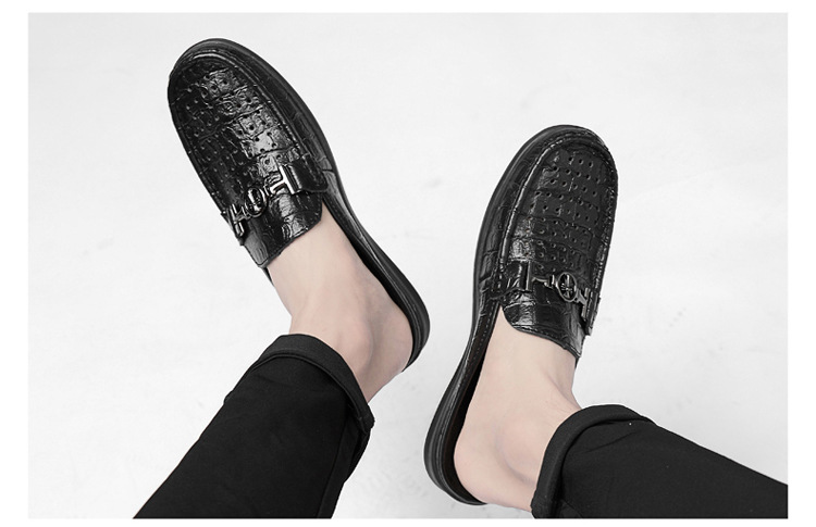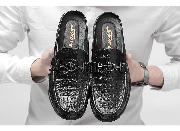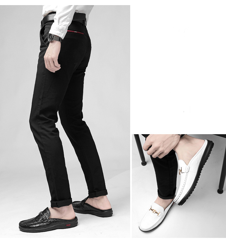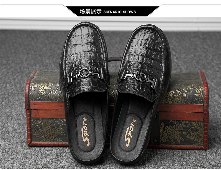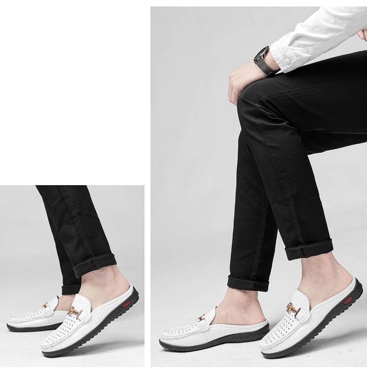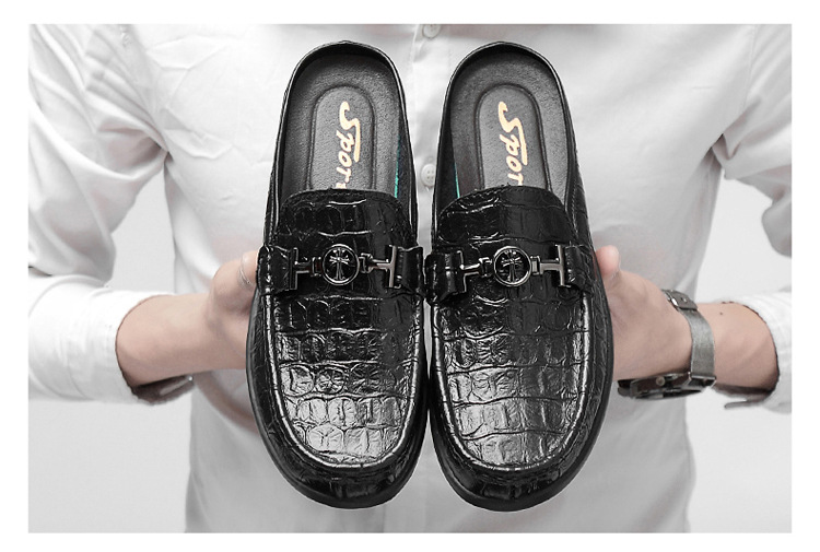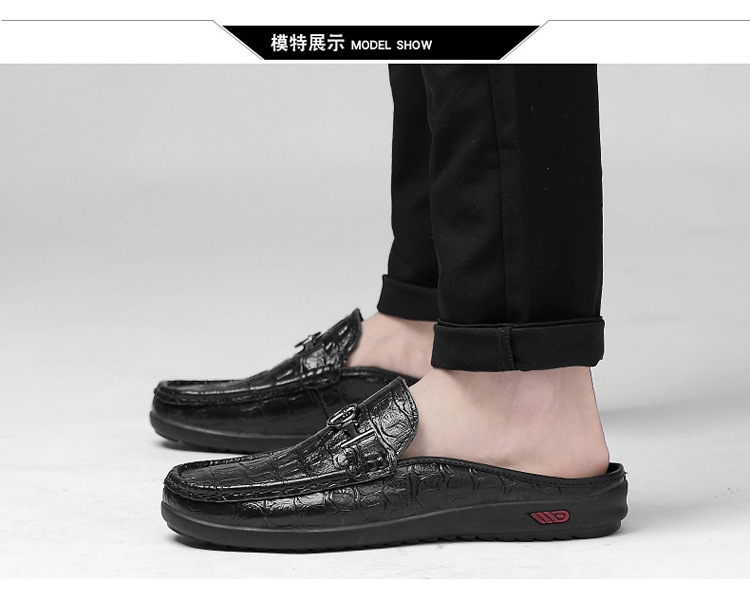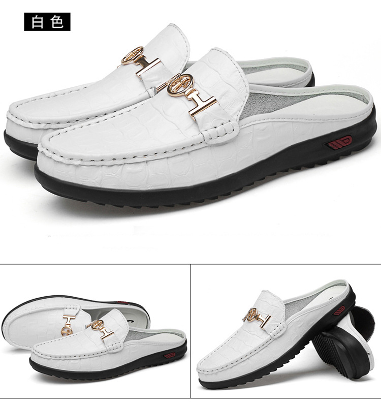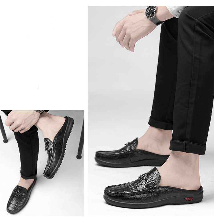 트렌디 한 게으른 피팅 신발 남성용 Cowhide 부드러운 밑창 가죽 신발 올 매치 캐주얼 남성용 힐프리 하프 슬리퍼