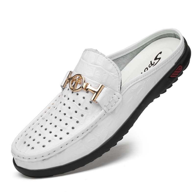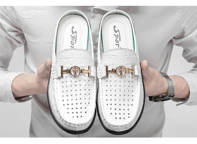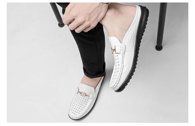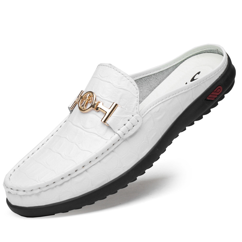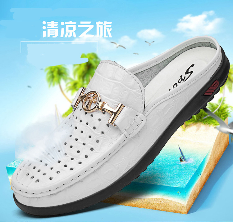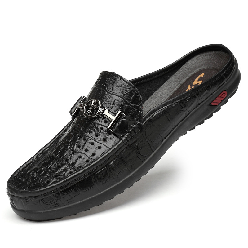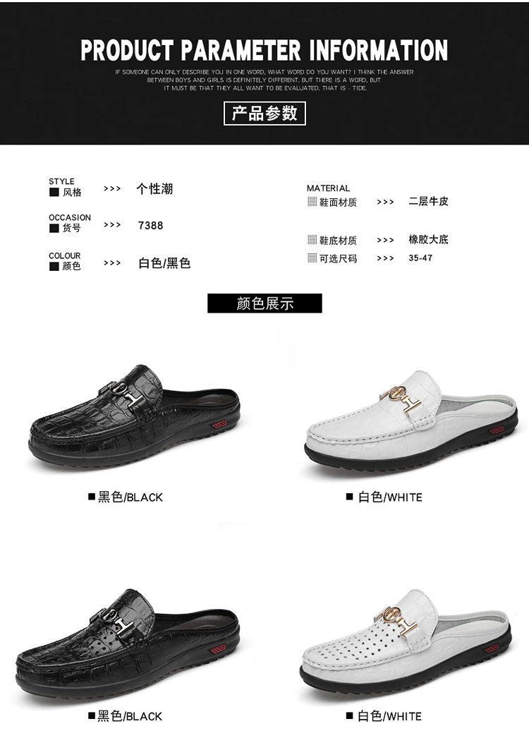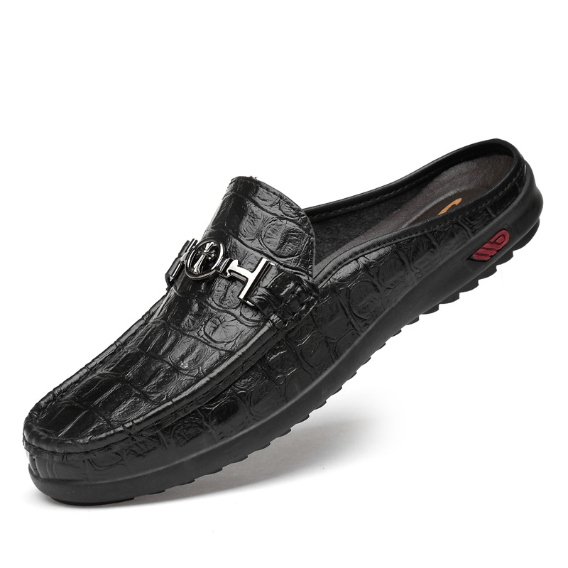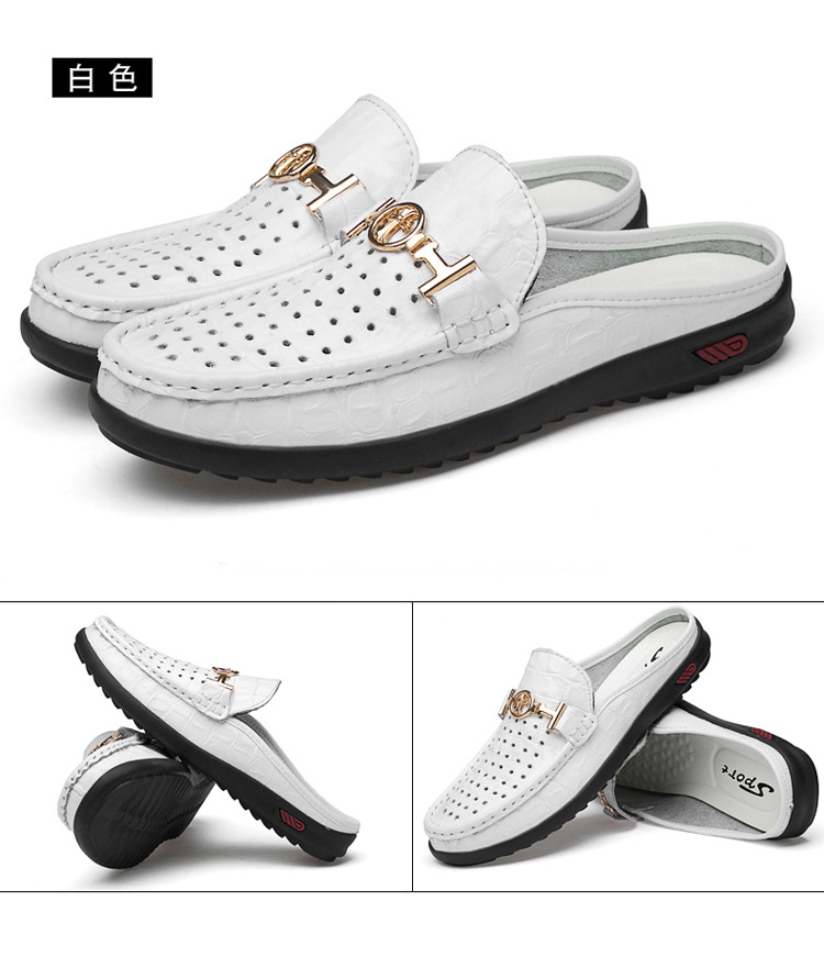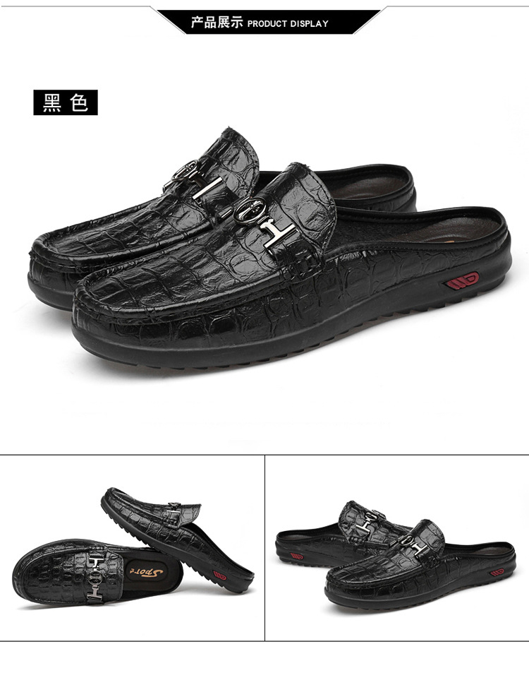 트렌디 한 게으른 피팅 신발 남성용 Cowhide 부드러운 밑창 가죽 신발 올 매치 캐주얼 남성용 힐프리 하프 슬리퍼