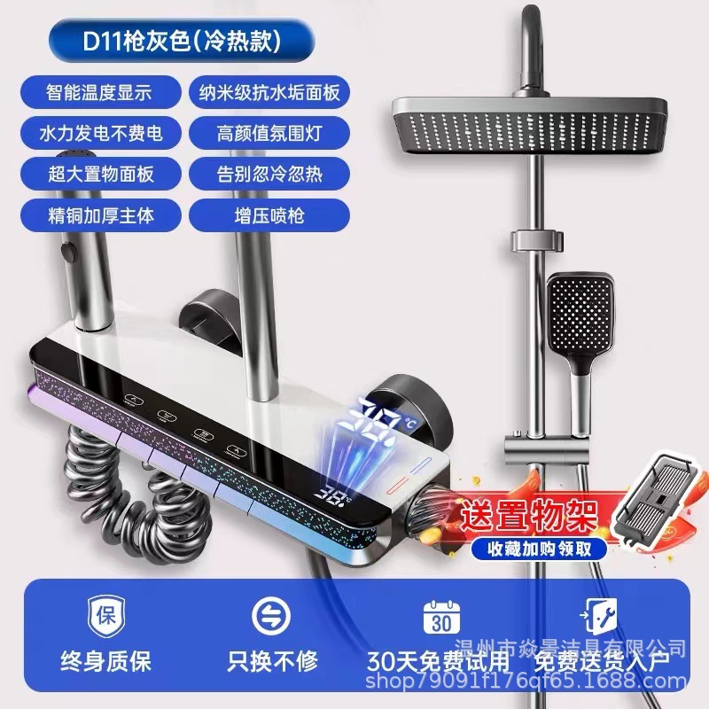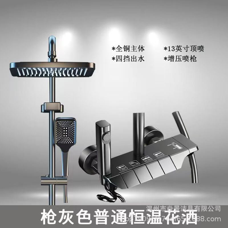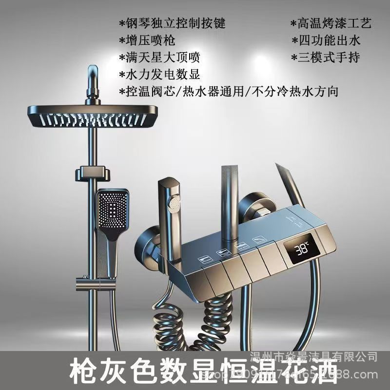 지능형 미세 구리 일정한 온도 샤워 세트 가정용 디지털 디스플레이 욕실 비 부스터 총 회색 샤워 장치 스프레이 헤드
