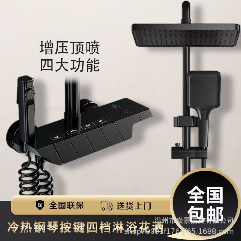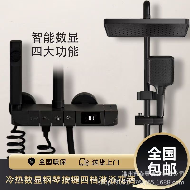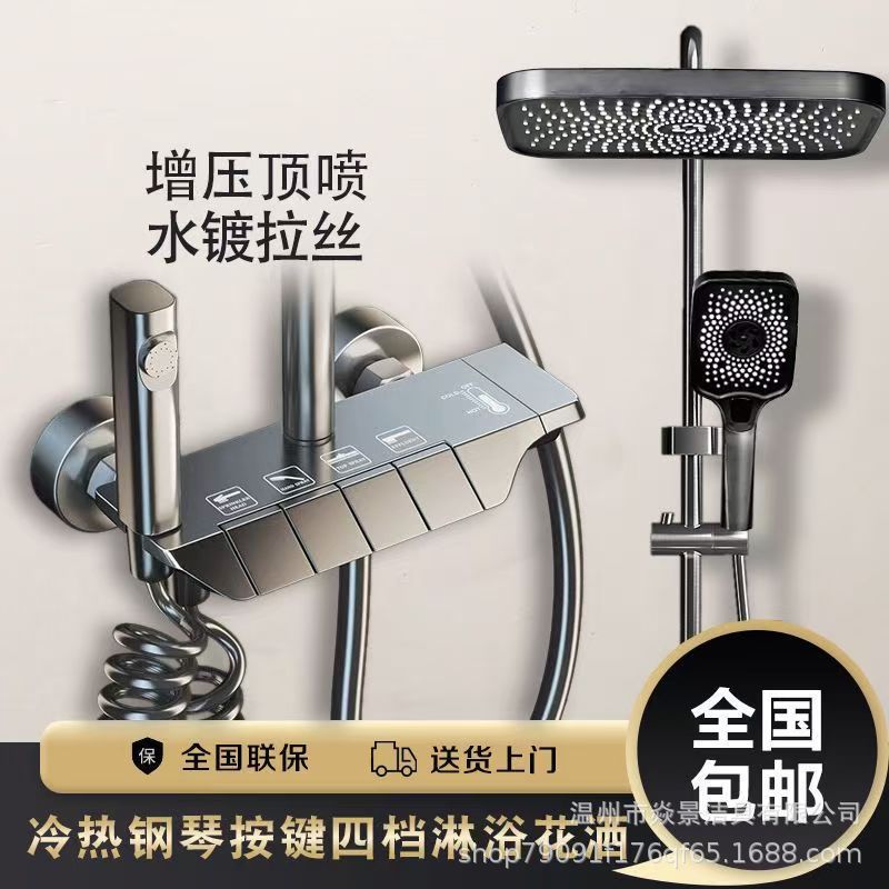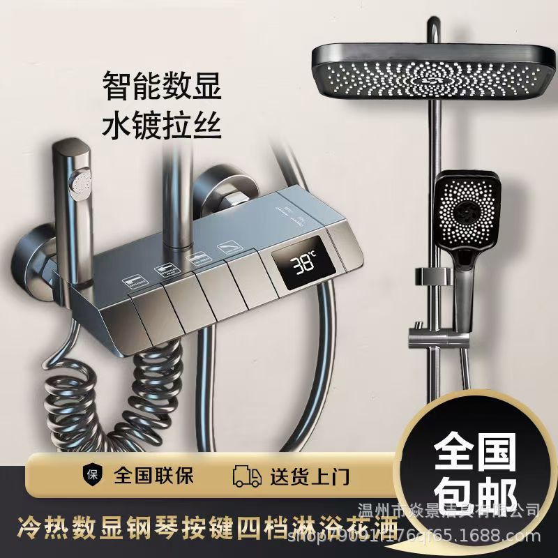 지능형 미세 구리 일정한 온도 샤워 세트 가정용 디지털 디스플레이 욕실 비 부스터 총 회색 샤워 장치 스프레이 헤드스토어 가기