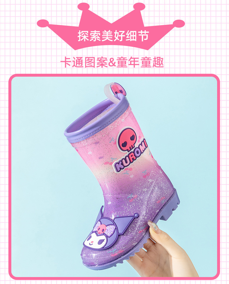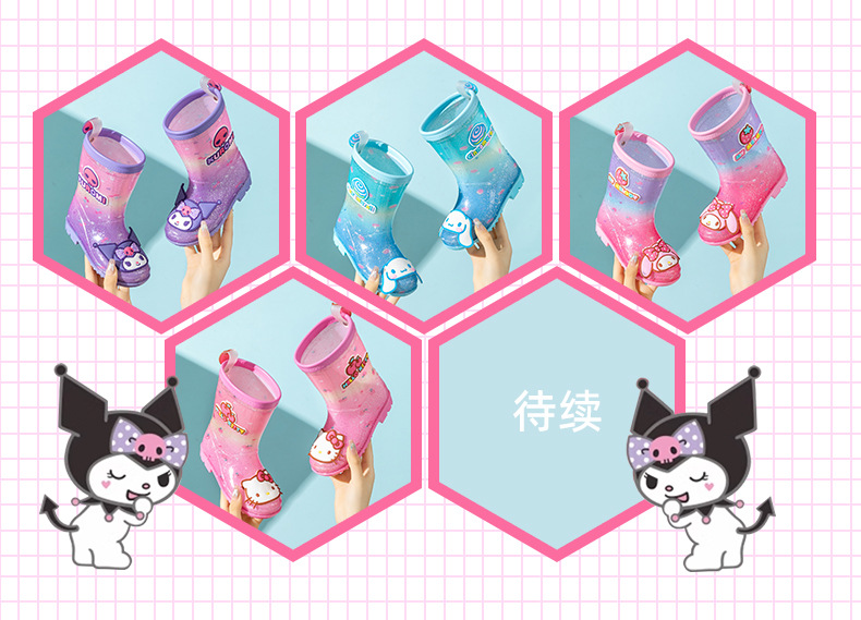 산리오 어린이 비 부츠 소녀 유치원 귀여운 만화 중 낮은 배럴 어린이 Kulomi 어린이 크리스탈 비 부츠