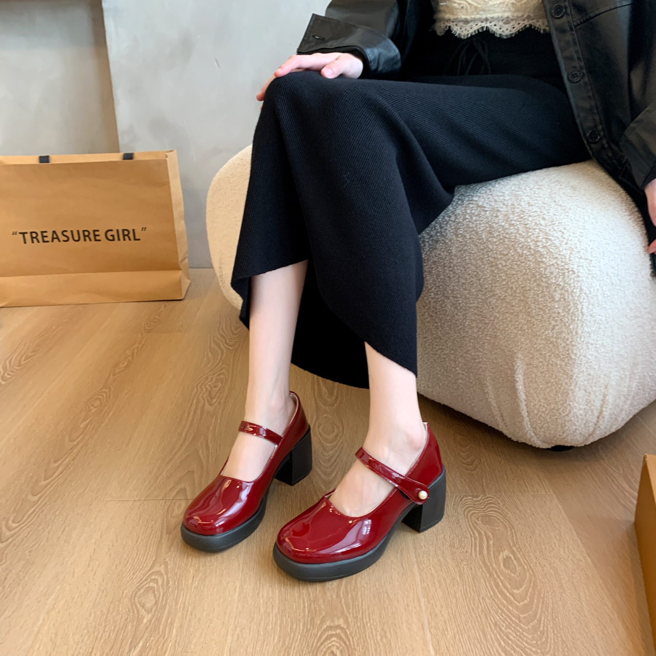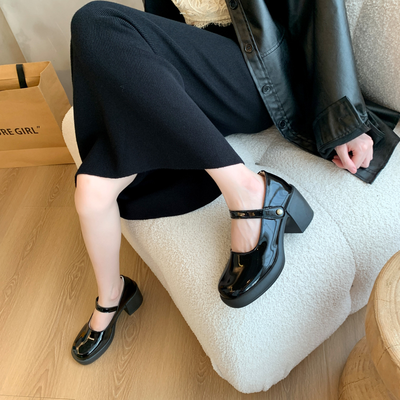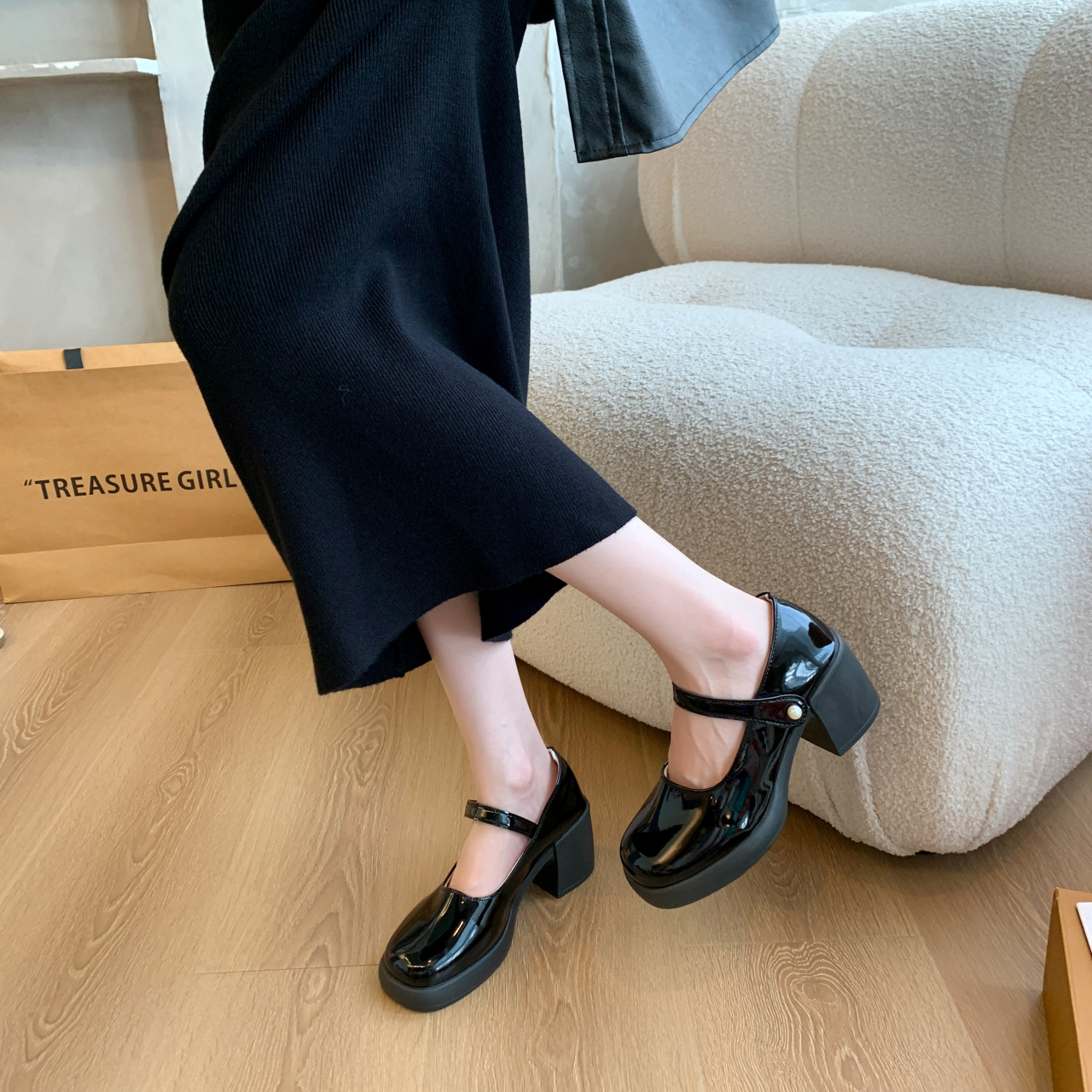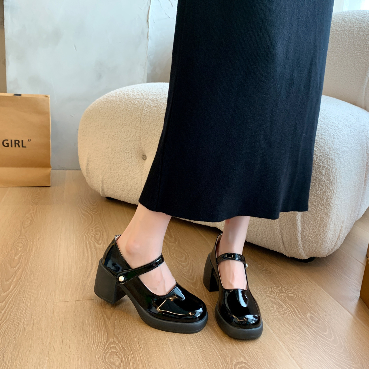 메리 제인 작은 가죽 신발 2024 가을 새 스커트 둥근 머리 두꺼운 바닥 두꺼운 뒤꿈치와 대학 스타일 하이힐스토어 가기