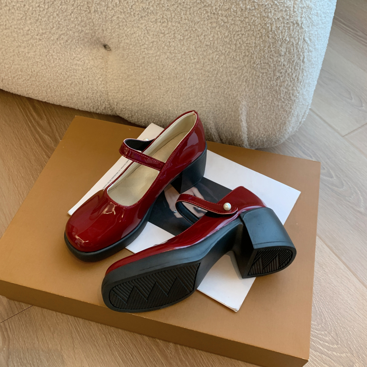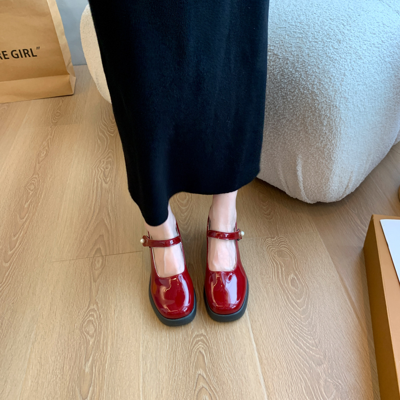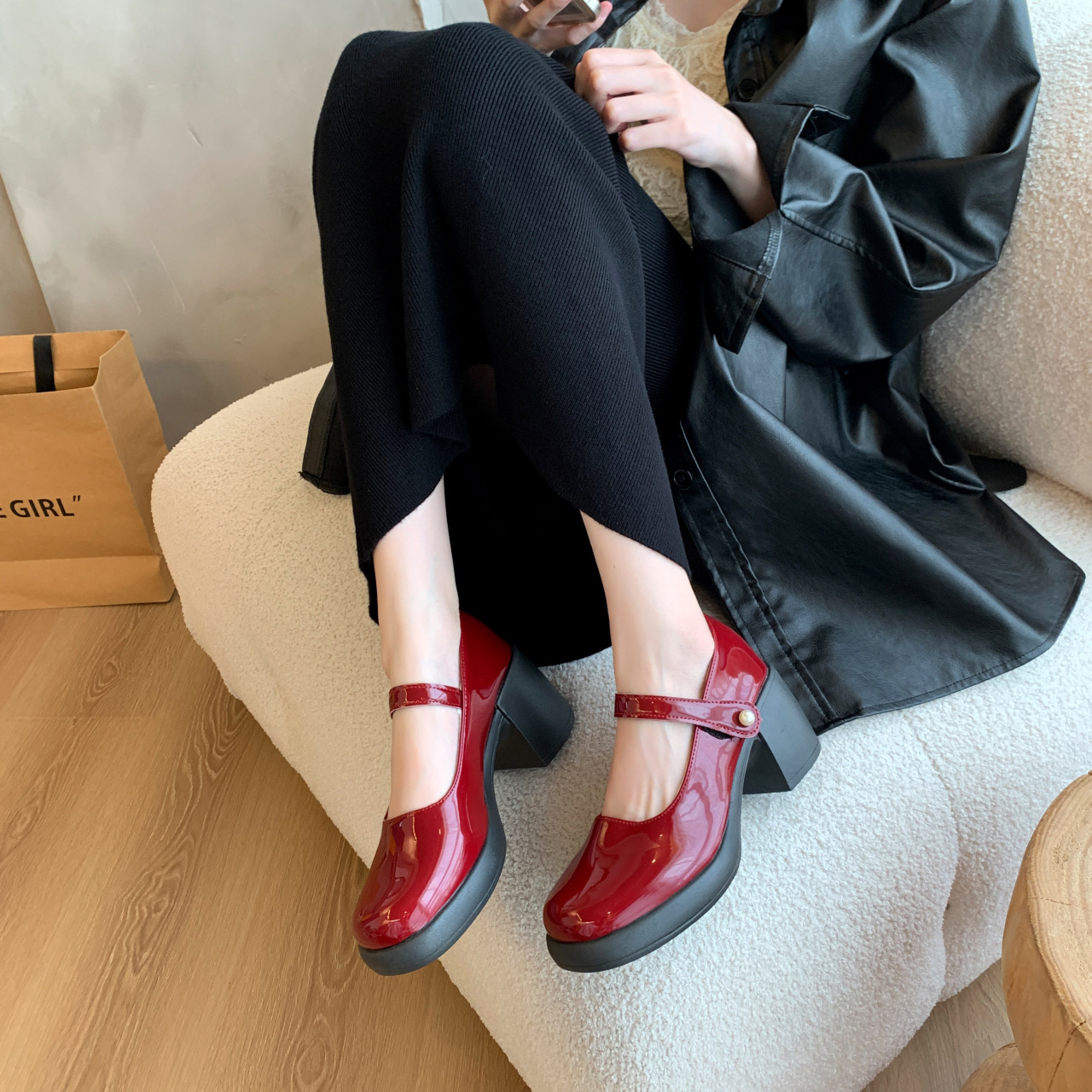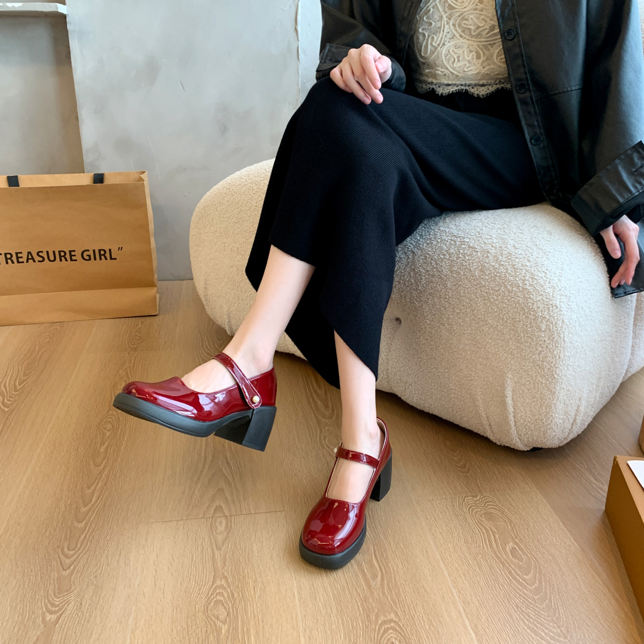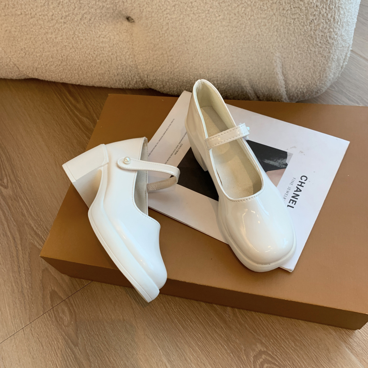 메리 제인 작은 가죽 신발 2024 가을 새 스커트 둥근 머리 두꺼운 바닥 두꺼운 뒤꿈치와 대학 스타일 하이힐스토어 가기