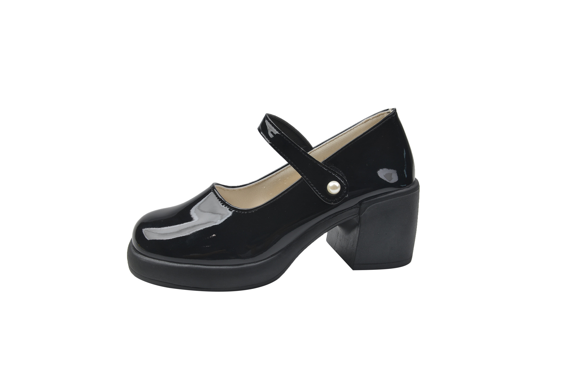 메리 제인 작은 가죽 신발 2024 가을 새 스커트 둥근 머리 두꺼운 바닥 두꺼운 뒤꿈치와 대학 스타일 하이힐