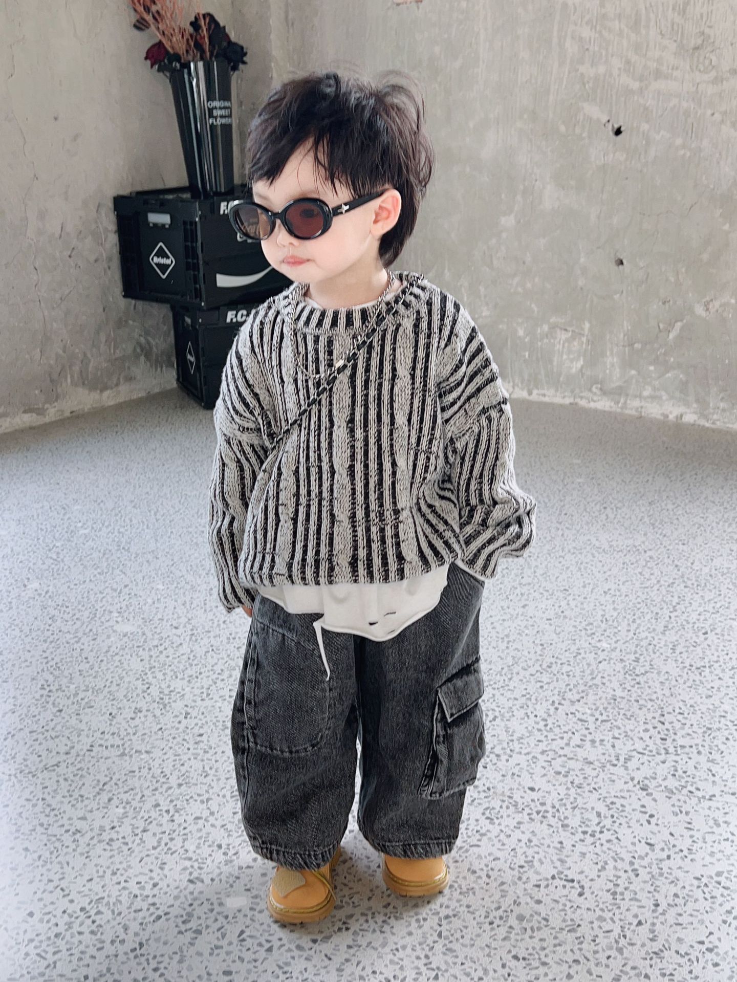 두꺼운 아동복 남성 어린이 줄무늬 스웨터 봄과 가을 유행 아기 스웨터 한국 잘 생긴 아이들의 최고 패션스토어 가기