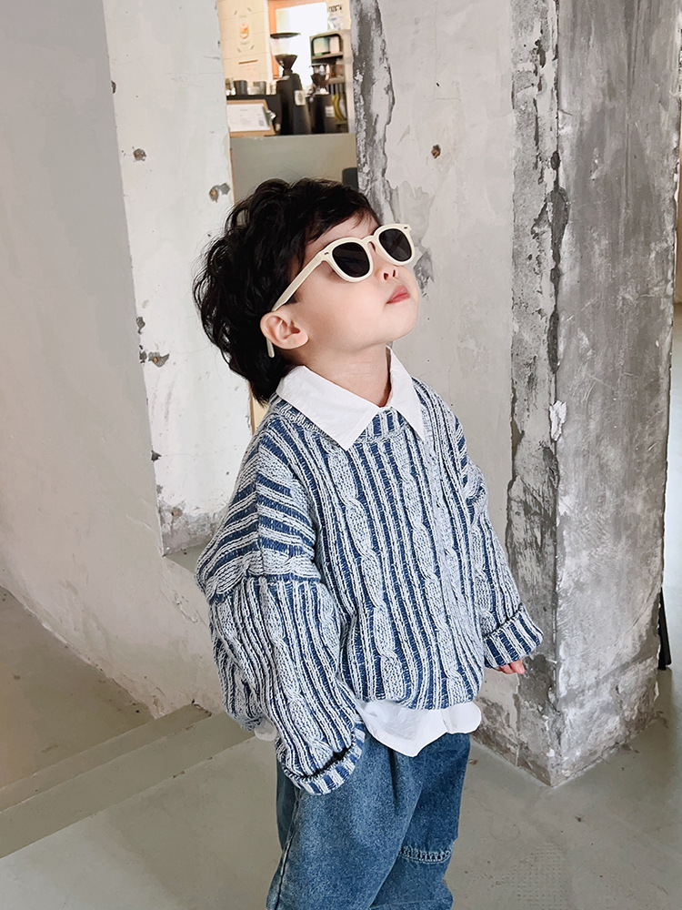 두꺼운 아동복 남성 어린이 줄무늬 스웨터 봄과 가을 유행 아기 스웨터 한국 잘 생긴 아이들의 최고 패션