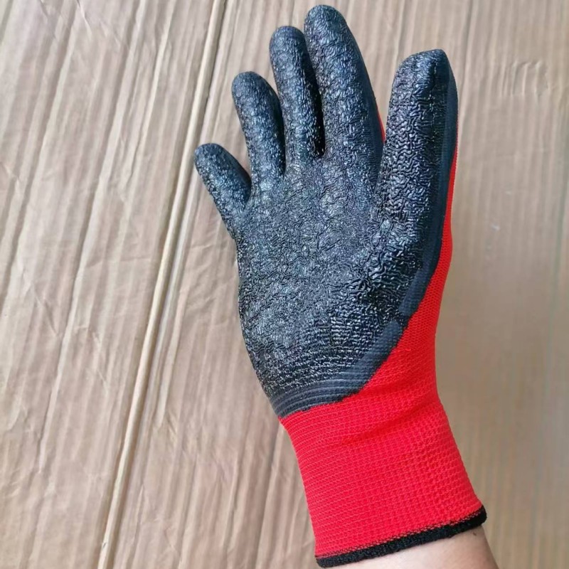 13핀 나일론 주름 장갑, 내마모성, 미끄럼 방지, 빨간색 원사 접착제, 주름진 노동 보호, 건설 자동차 수리 현장 노동 보호