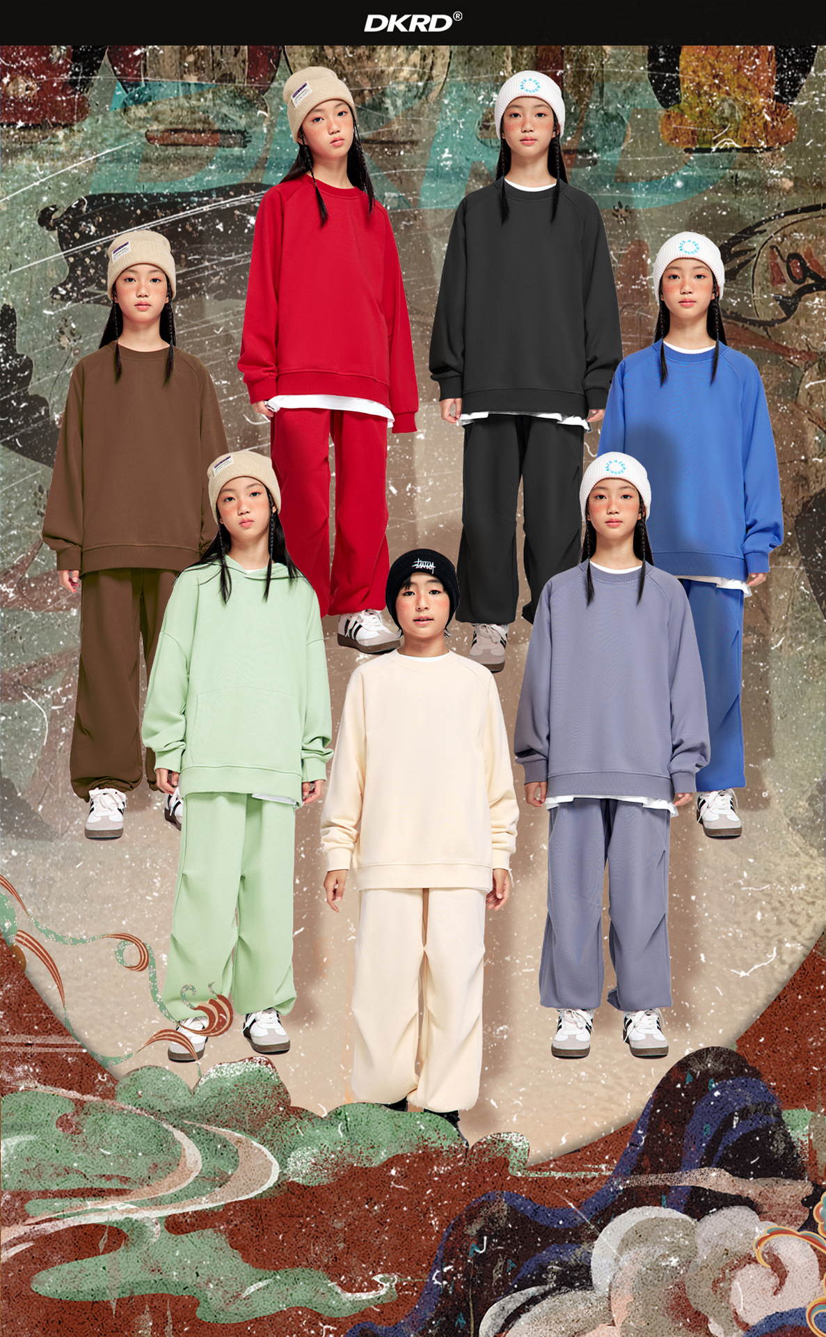DK 아동복 봄과 가을 빈티지 느슨한 단색 운동복 어린이 소녀 소년 스포츠 서양식 캐주얼 바지 바지 바지