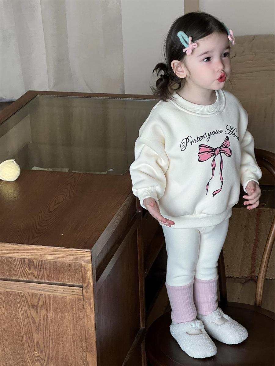 아동 가을 겨울 정장 한국 스타일 아동복 아기 옷 새로운 스타일 소녀 늦가을 두꺼운 스웨트 셔츠와 레깅스 정장