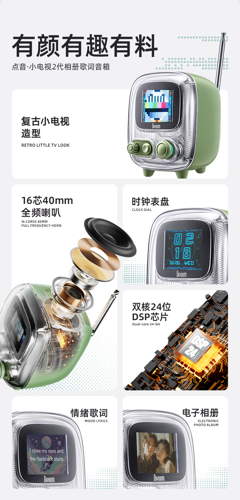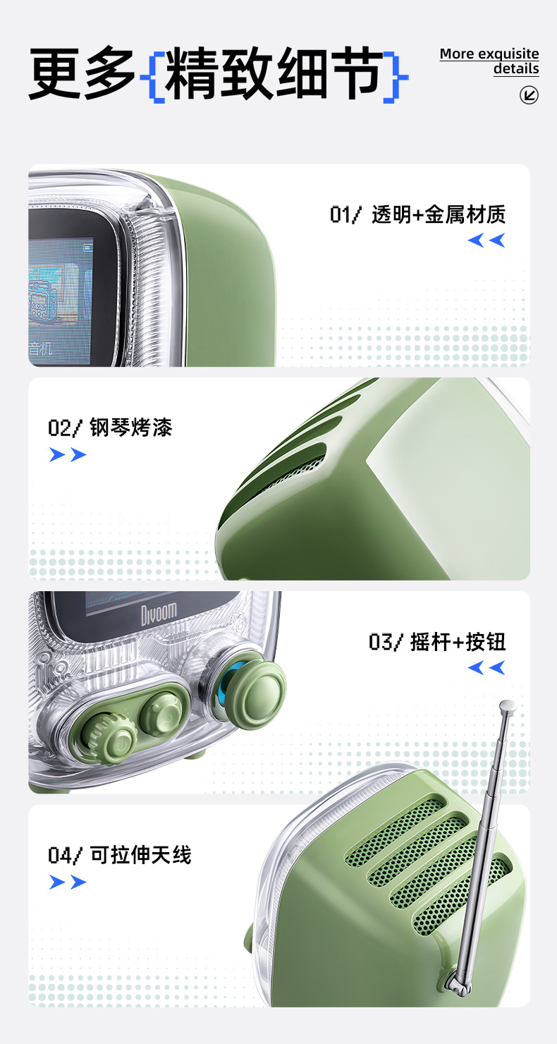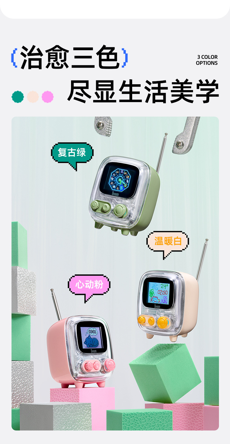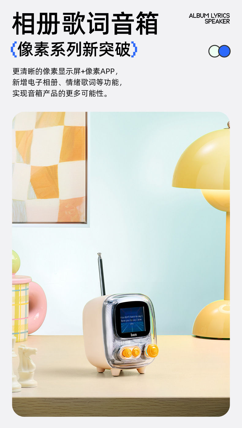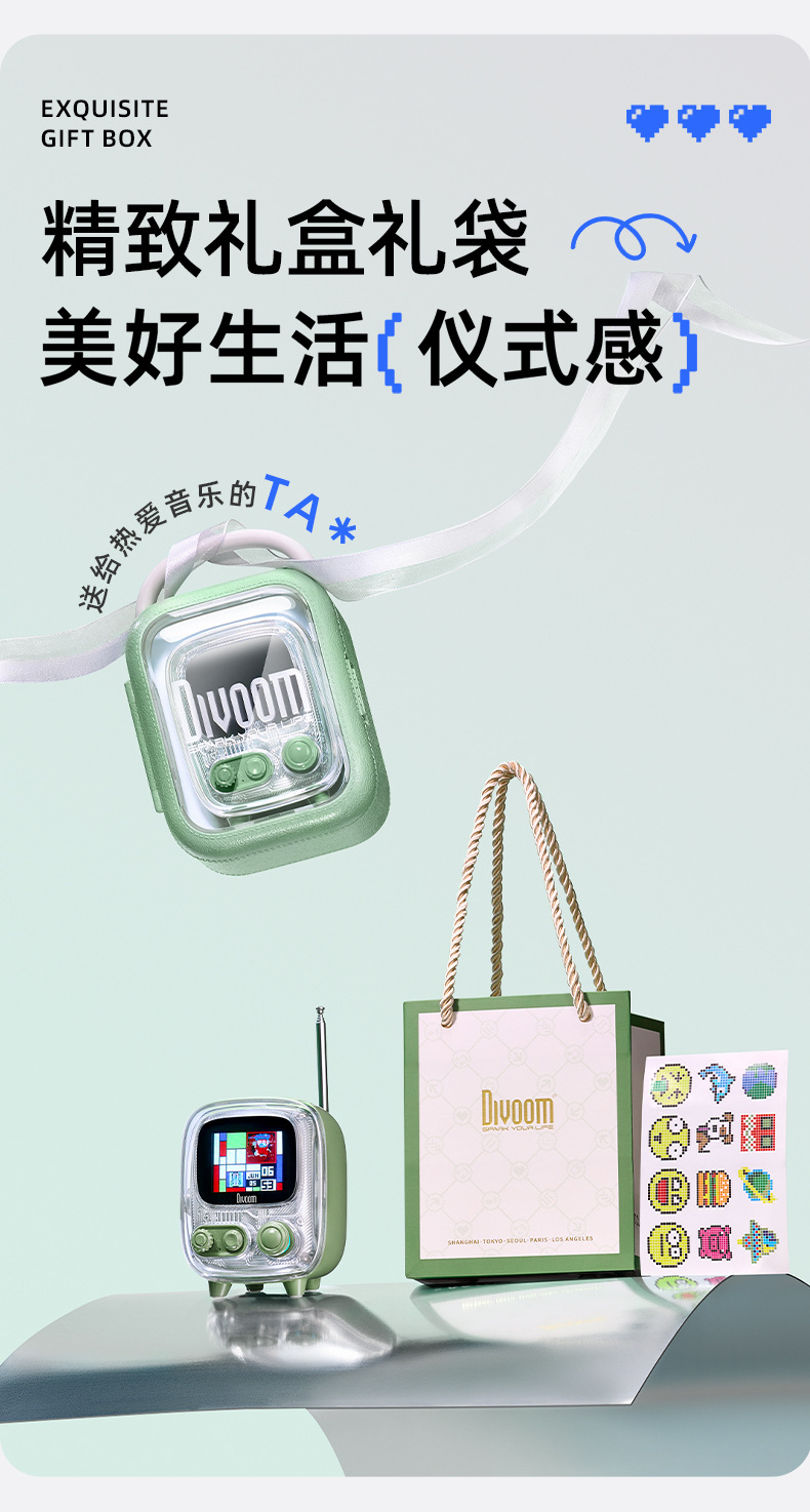 点音音箱(英文DIVOOM),自2006年创立于中国深圳,一直坚持"品牌出海战略",专注高品质制造和声光科技研发。2015年DIVOOM出品全球第一款像素音箱,并诞生围绕像素创作和社区营运的APP点音。到2019年,APP注册用户已经超过200万,集结了日本,德国,法国的一大批像素艺术家,我们正全力用创意智能硬件,工具型软件,高粘度社区打造一个有强烈中国互联网特征的新一代国际品牌。