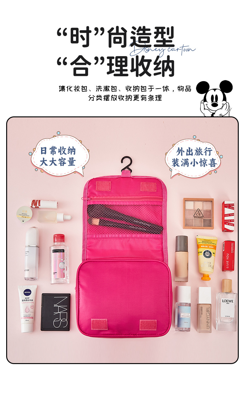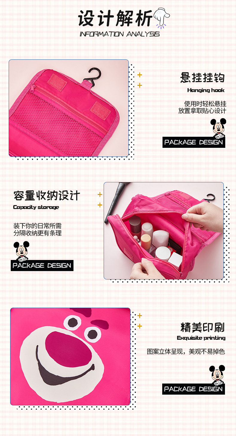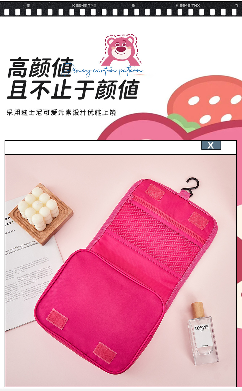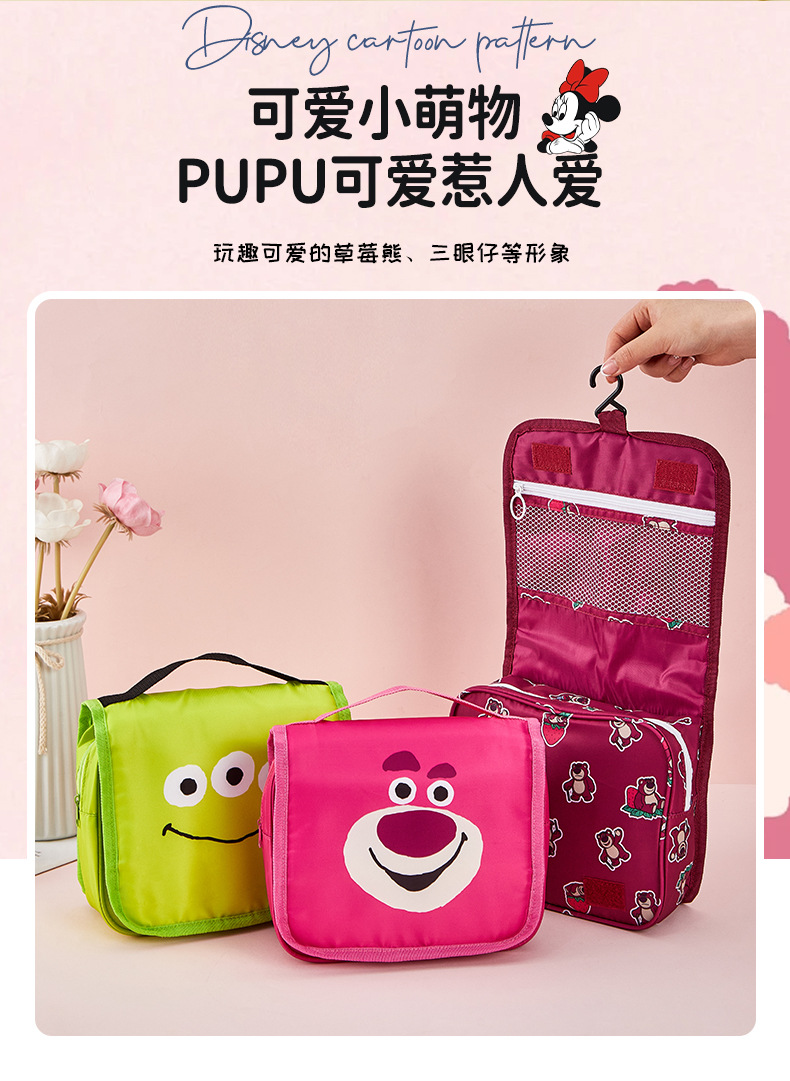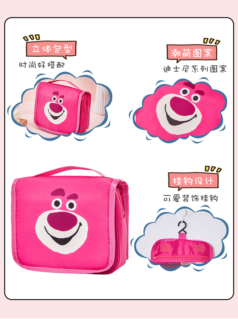 디즈니 딸기 곰 다기능 세면 용품 가방 대형 에어 용량 접이식 여행 교수형 스토리지 화장품 가방 세면 용품 가방스토어 가기